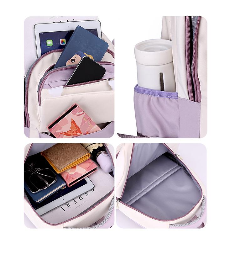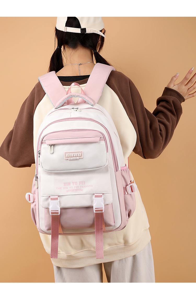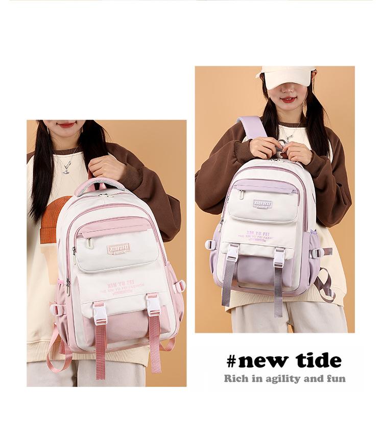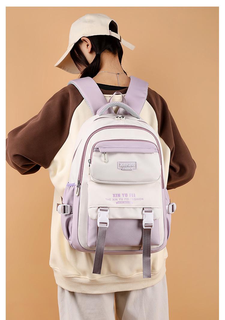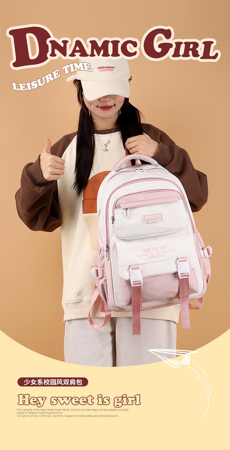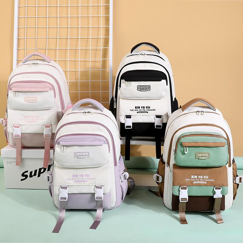 Mochila escolar para estudiantes de secundaria, mochila ligera de gran capacidad para mujer, color contrastante, bonita mochila para estudiantes de primaria de tercer a sexto grado