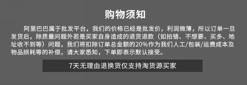 6. Las fotos de los productos de nuestra tienda, del almacén de la fábrica, etc., se toman en especie. Por favor, no las utilicen con terceros (excepto para su distribución). Gracias por su comprensión.