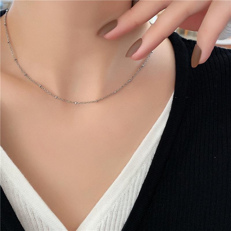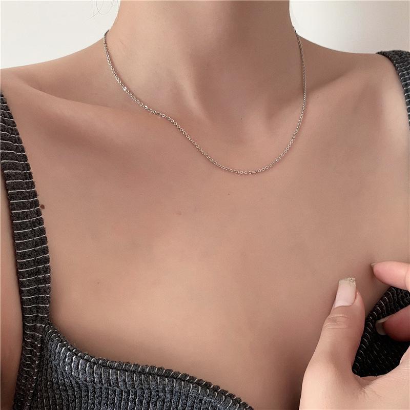Collar apilado básico simple de acero de titanio cadena lisa cadena única cadena desnuda cadena femenina cadena de hueso de serpiente sub-collar cadena de clavícula