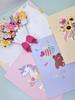 Pink animals with envelope, Blue bear with envelope, Pink cat with envelope, Yellow flowers with envelope, Pur...