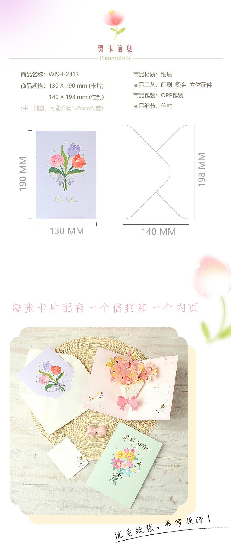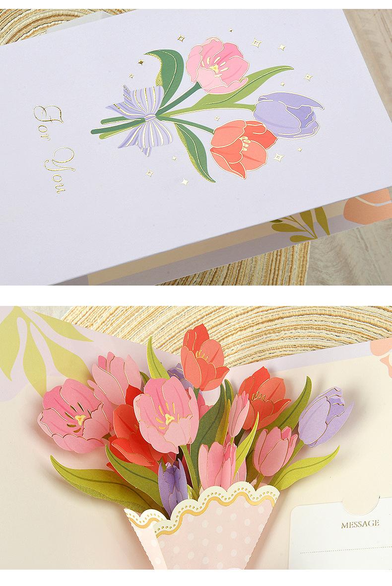 Tarjeta de Felicitación Estéreo 3D para el Día de la Madre Ramo Tarjeta de Felicitación para Maestra Regalo Tarjeta de Bendición Tarjeta de Agradecimiento con Sobre