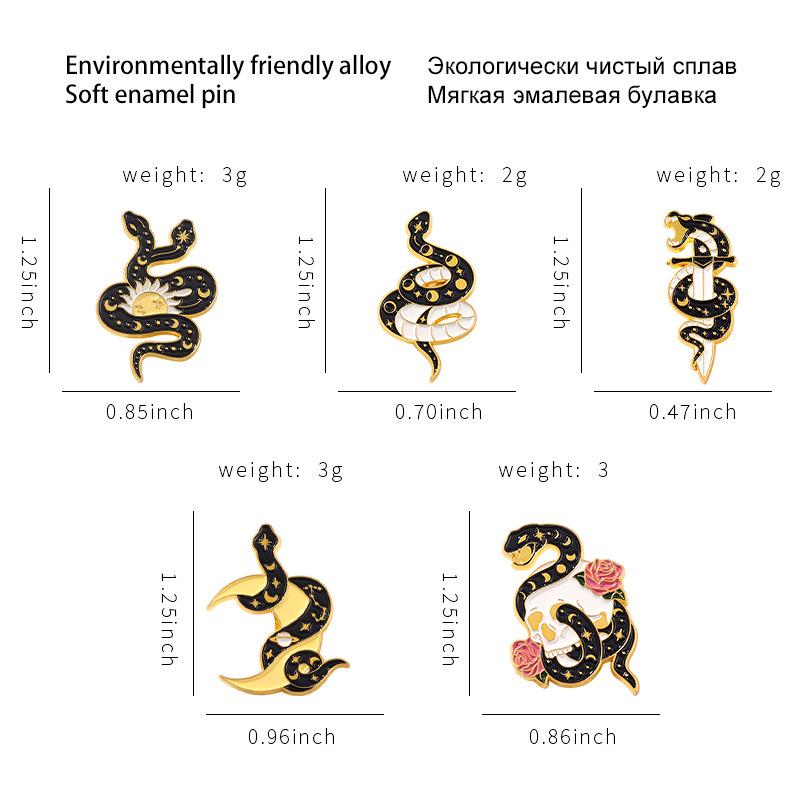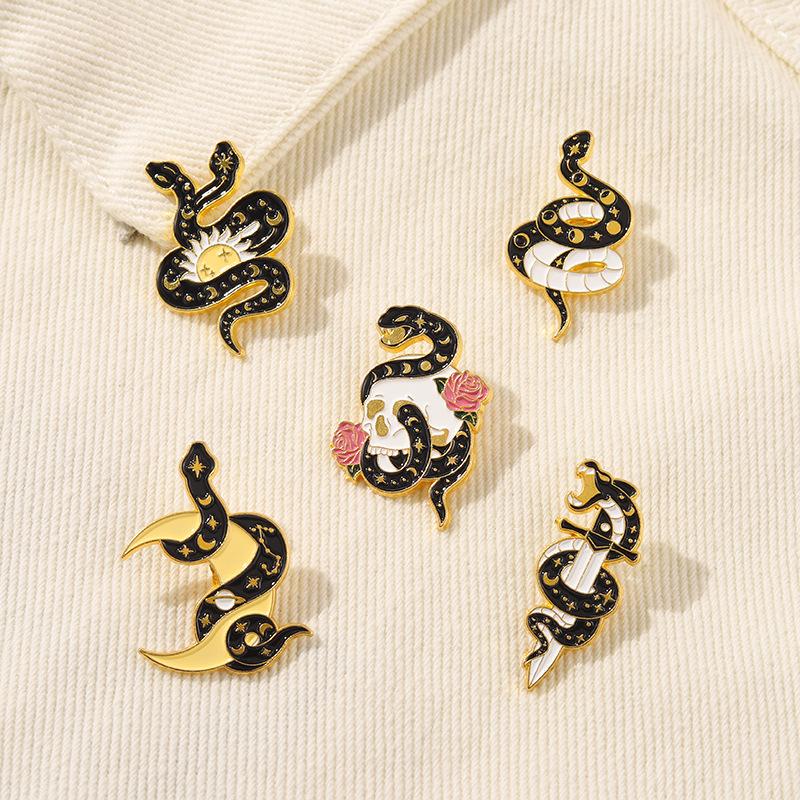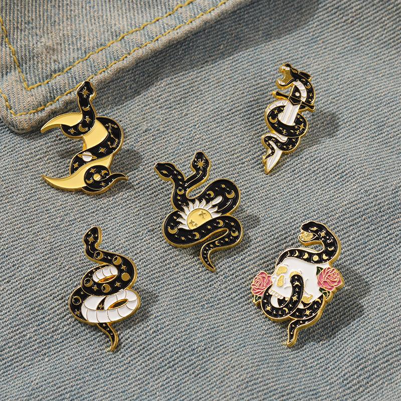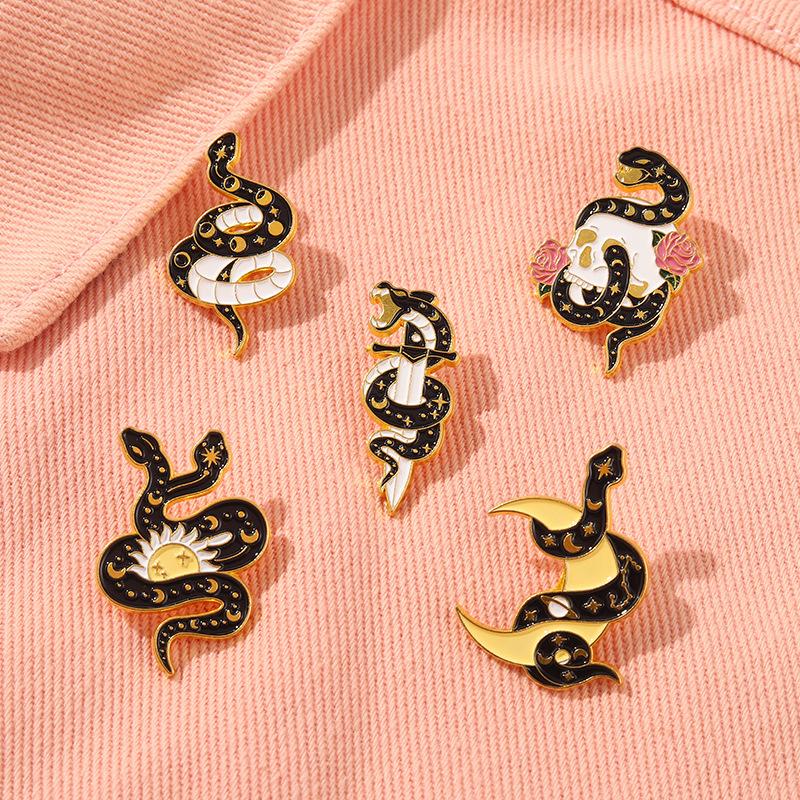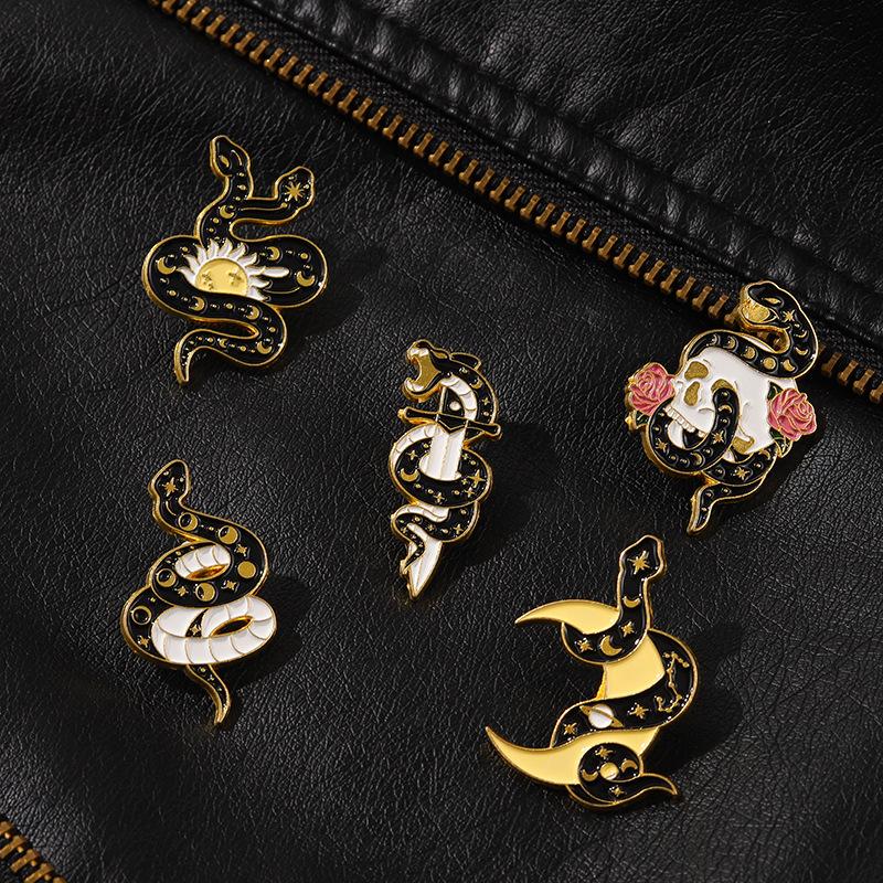 Broche de Aleación de Serpiente Oscura de Venta Caliente Europeo y Americano Sol Luna Calavera Insignia de Esmalte Joyería Personalizada Moderna y Genial