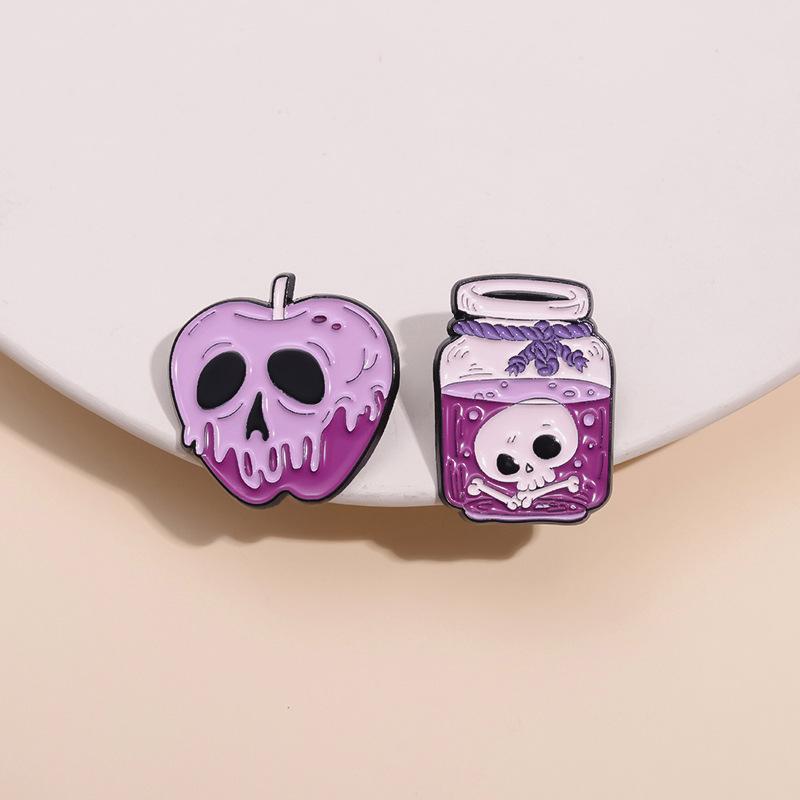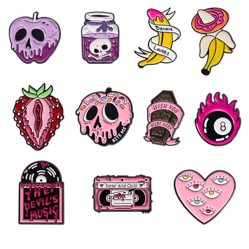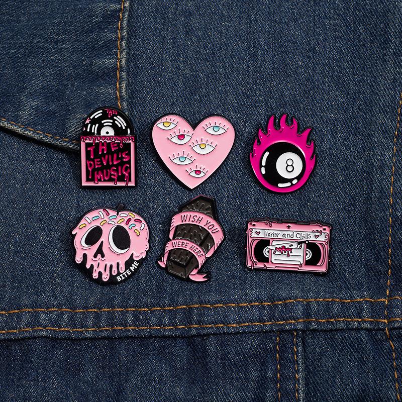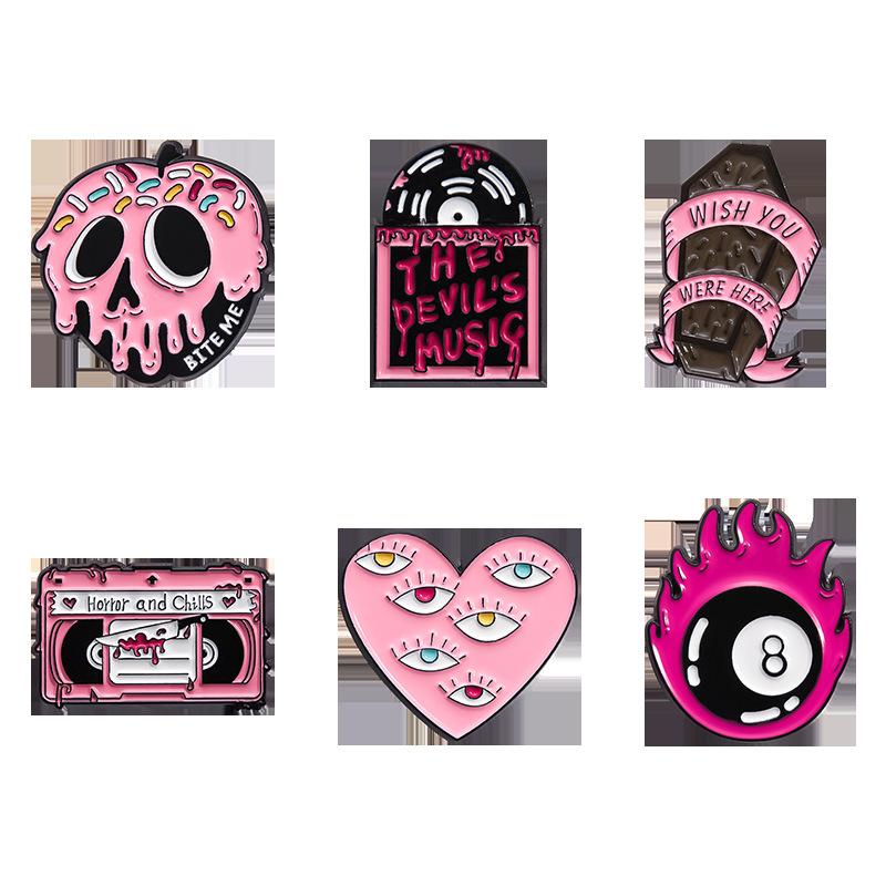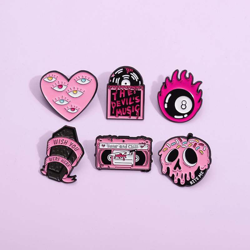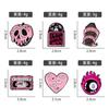 Broche geométrico rosa creativo con decoración de personalidad, divertida máscara de calavera con forma de amor, insignia de metal