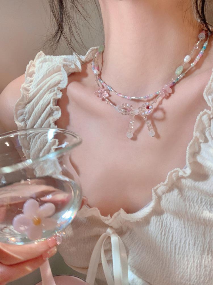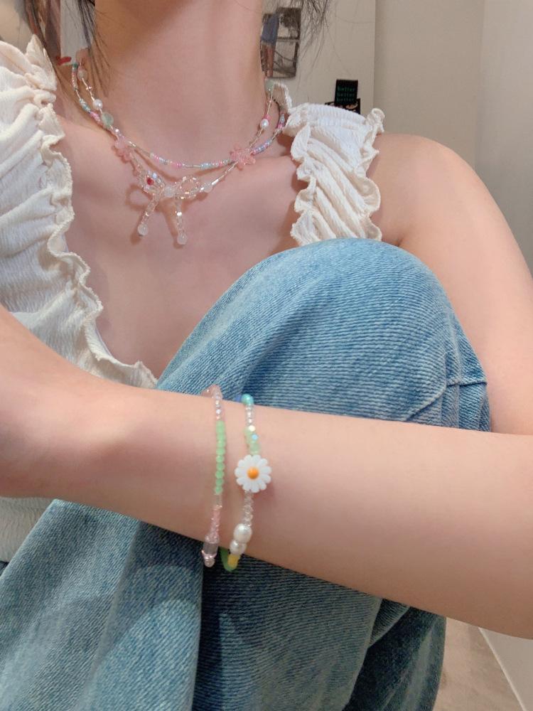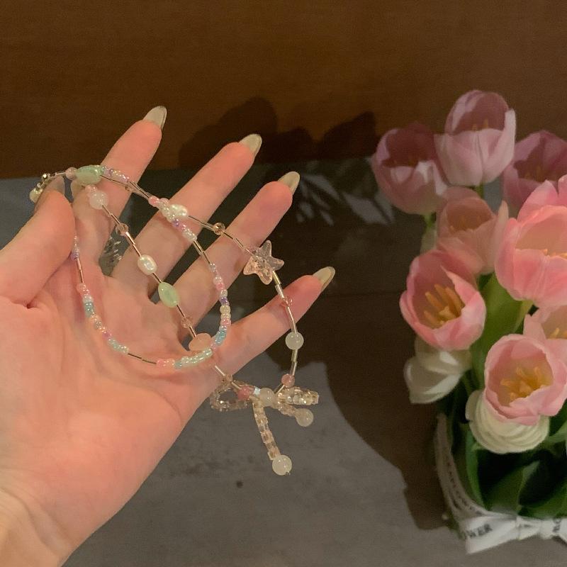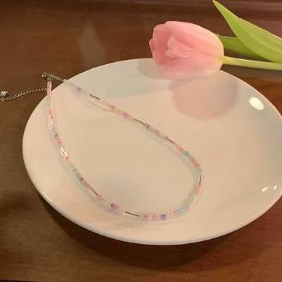 Collar de cuentas con lazo colorido hecho a mano de primavera, collar de flores, perlas de cristal, cadena de clavícula de lujo ligera para mujer