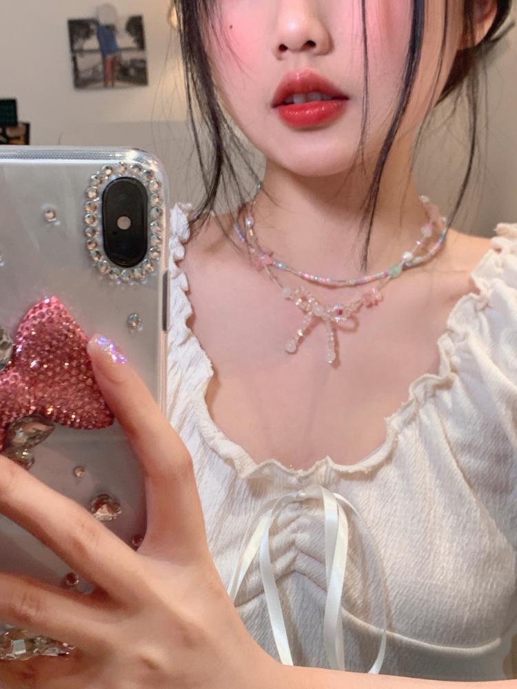 Colored Beaded Necklace, Bow Beaded Necklace, A set of two