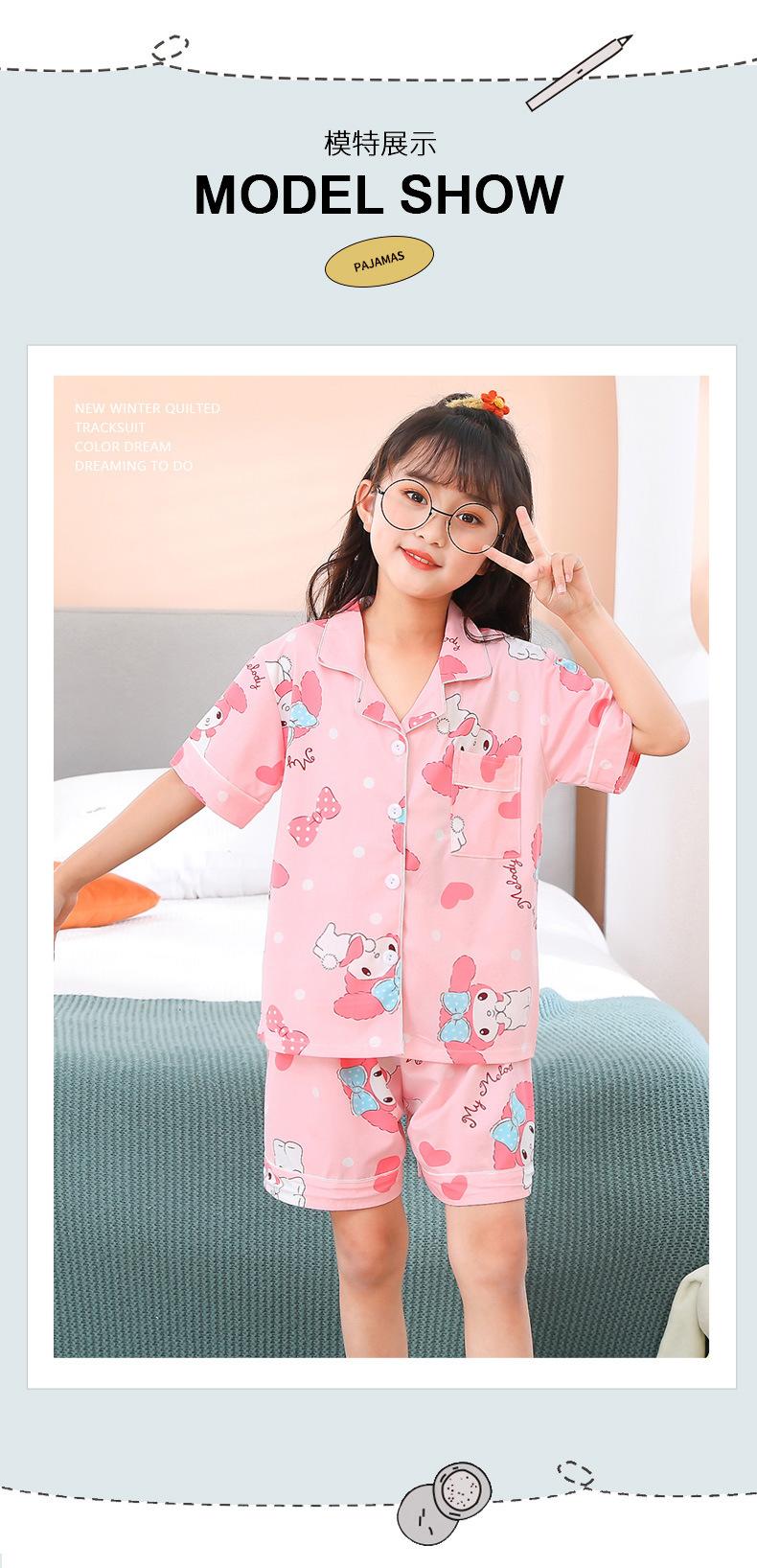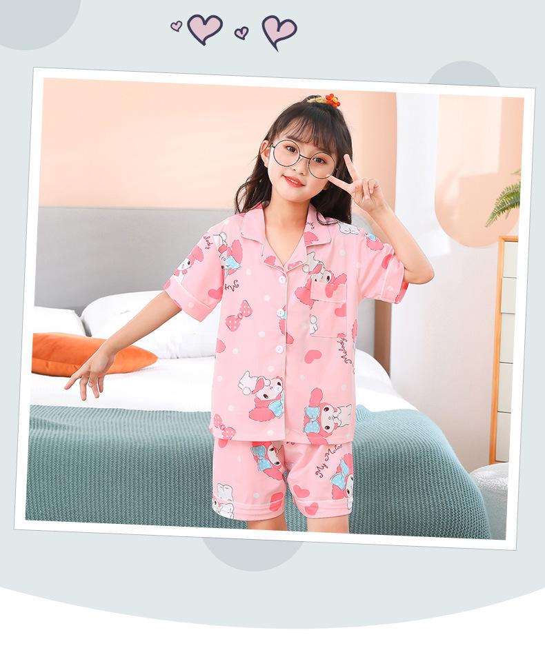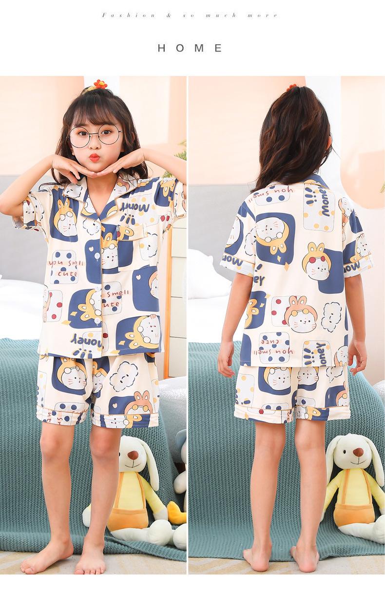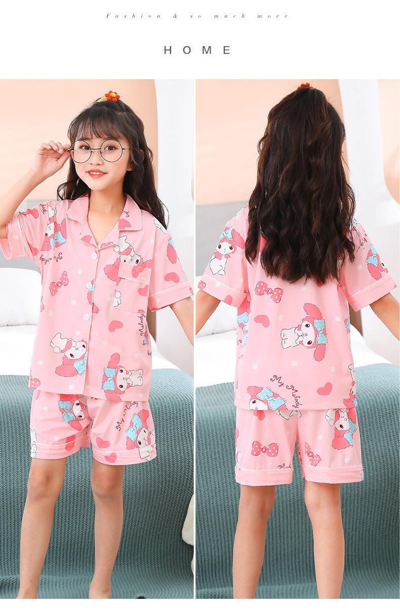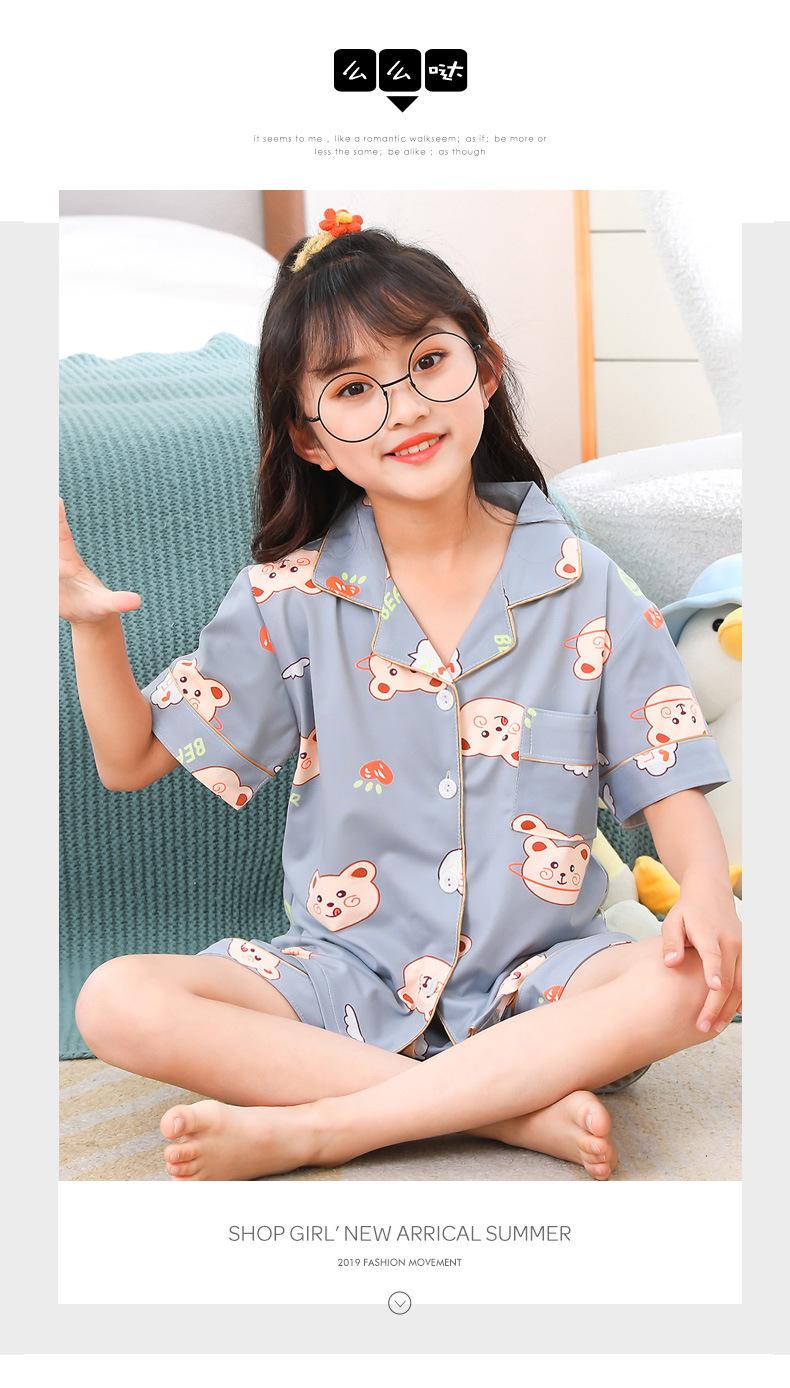 Pijamas infantiles transfronterizos para niñas, cárdigan fino de verano con dibujos animados para niñas, ropa de casa para bebés de manga corta, traje de dos piezas