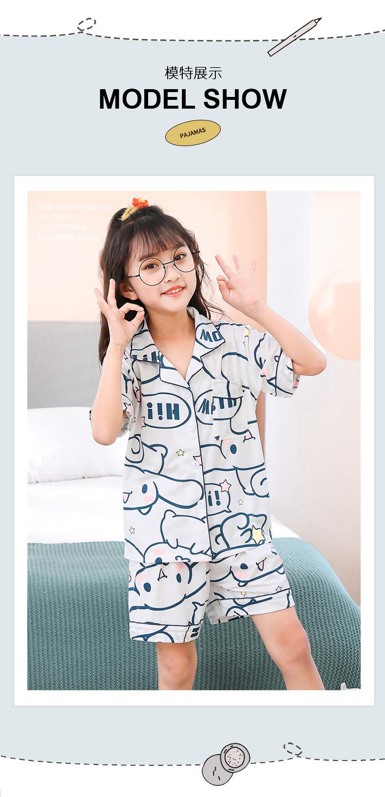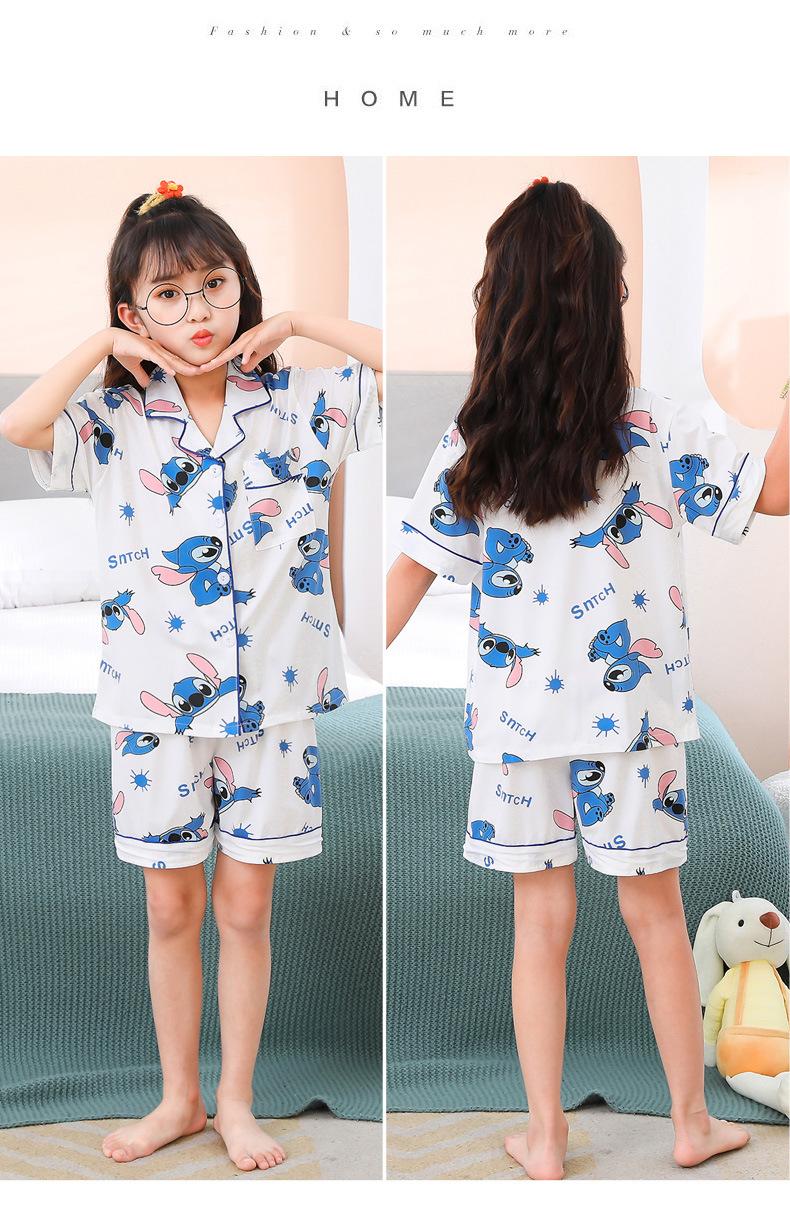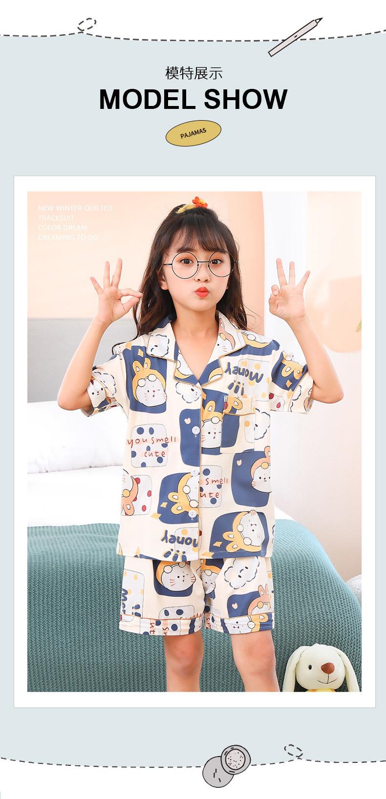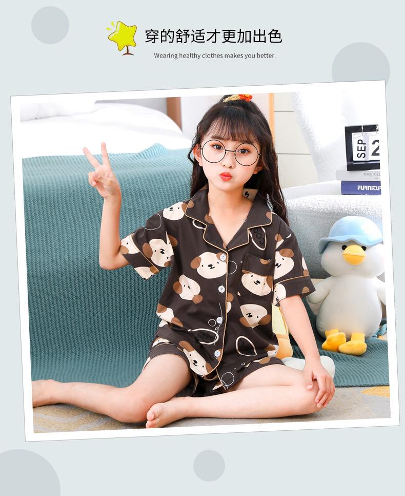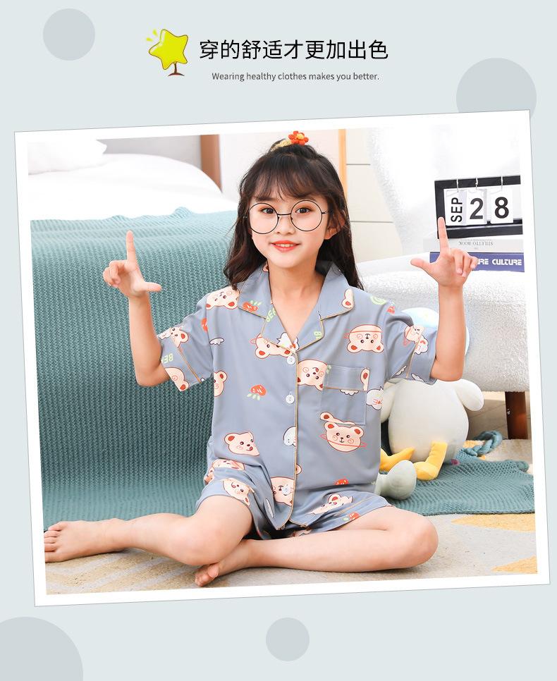 Pijamas infantiles transfronterizos para niñas, cárdigan fino de verano con dibujos animados para niñas, ropa de casa para bebés de manga corta, traje de dos piezas