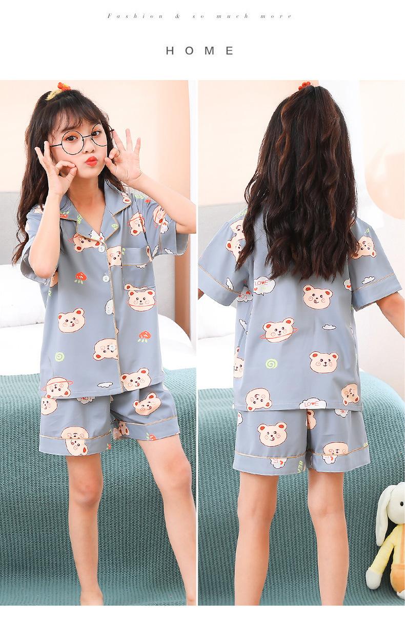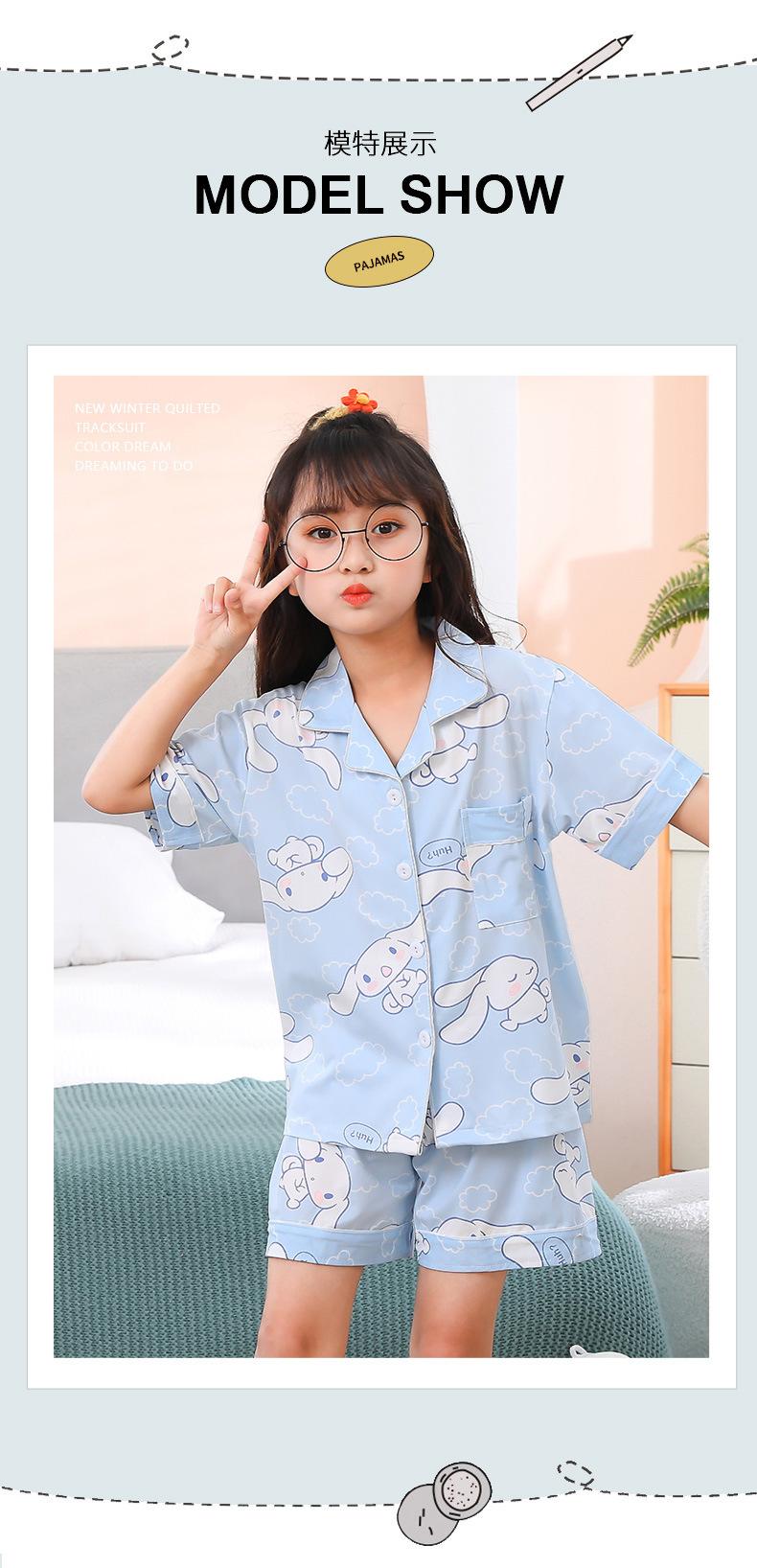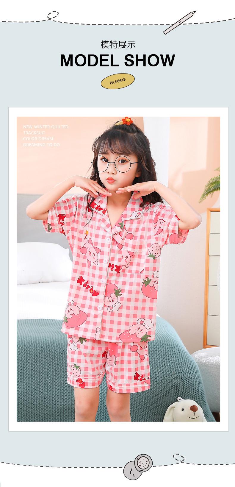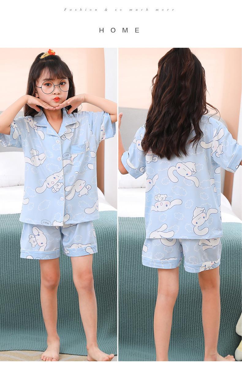 Pijamas infantiles transfronterizos para niñas, cárdigan fino de verano con dibujos animados para niñas, ropa de casa para bebés de manga corta, traje de dos piezas