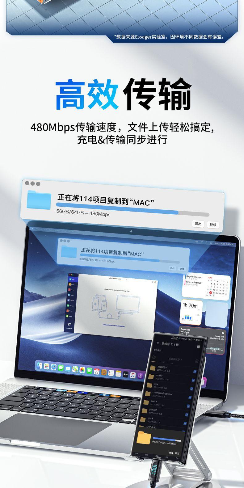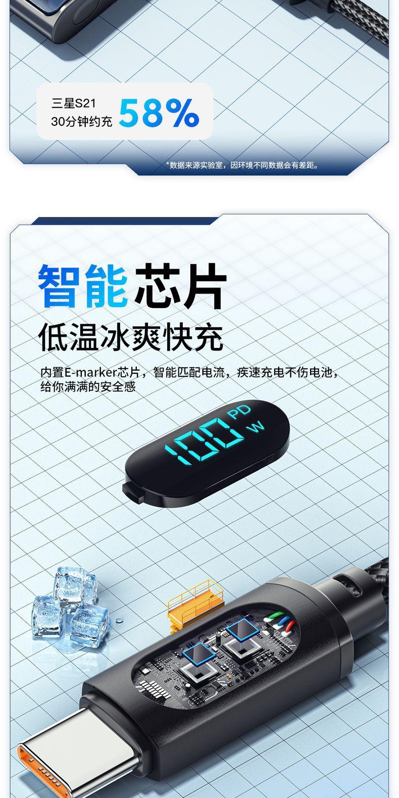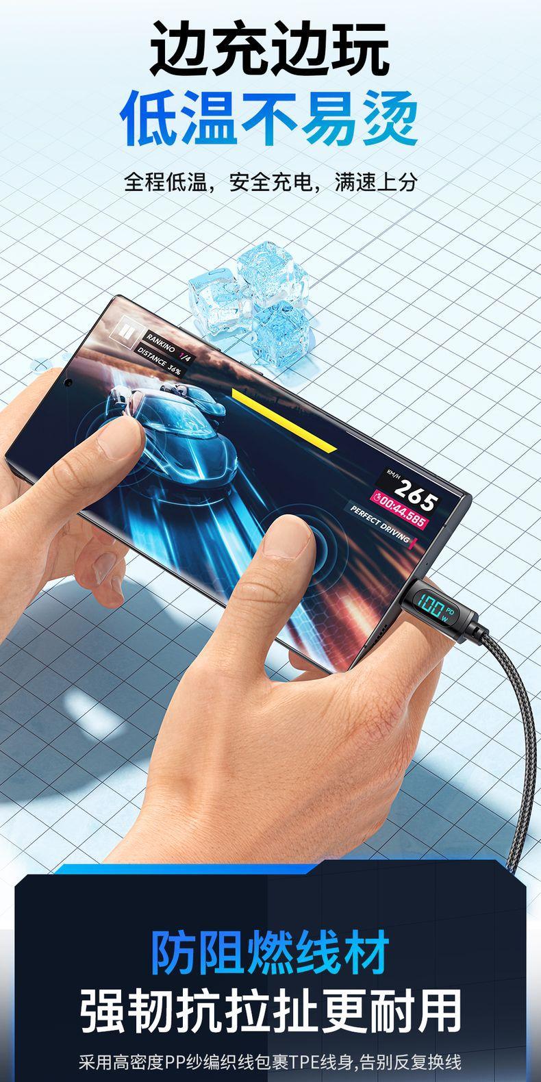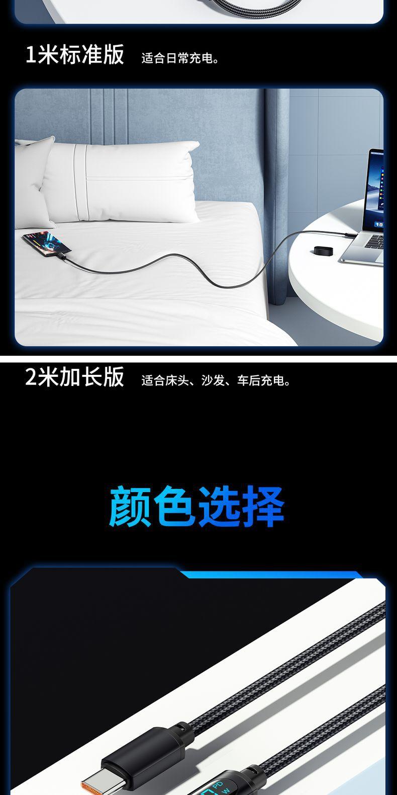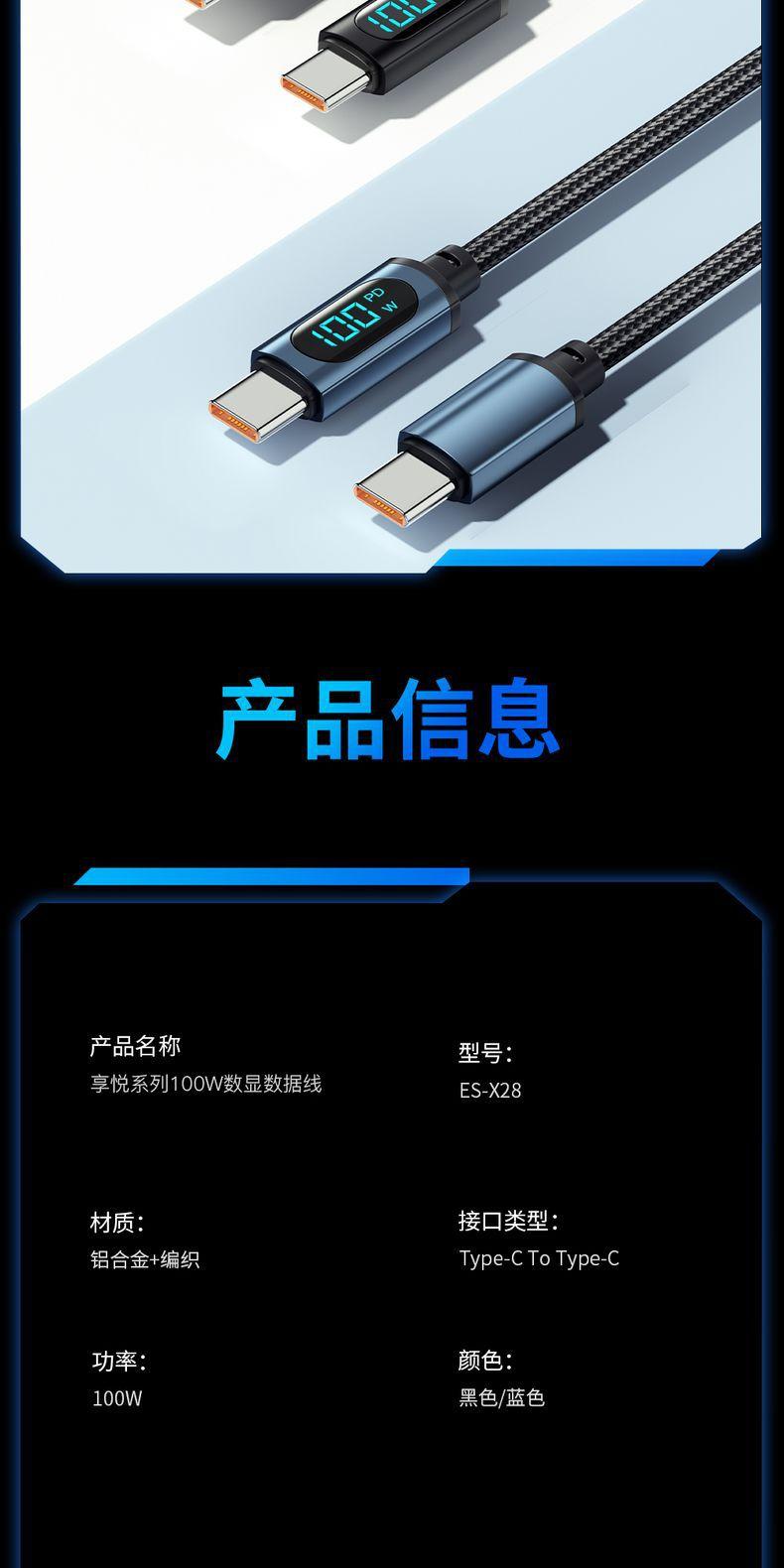 Cable de datos de pantalla digital PD100W, cable de carga rápida tipo C a C, cable de datos tipo C, cable de carga de energía para teléfono móvil y portátil.