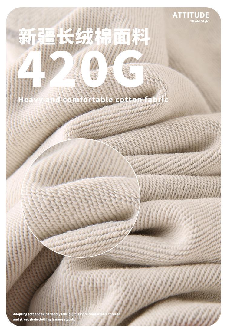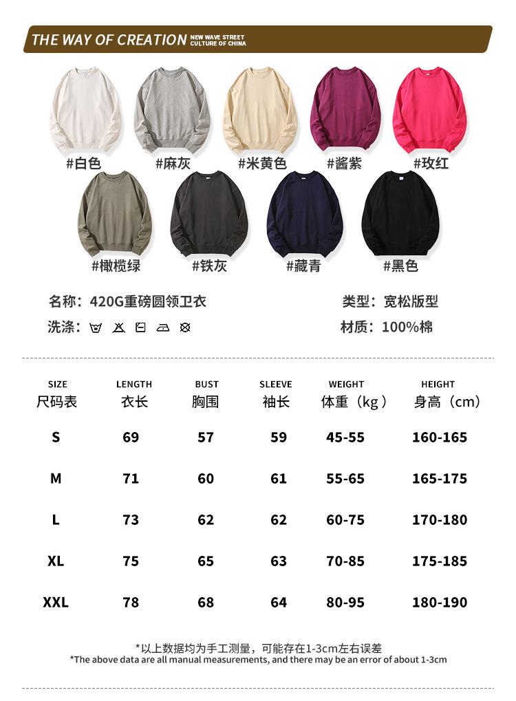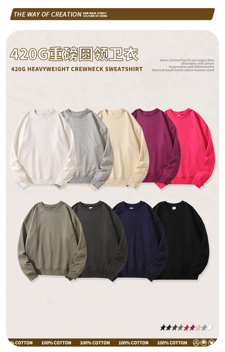 Sudadera de cuello redondo de felpa de algodón pesado de 420G para hombre, otoño, color sólido, chaqueta holgada, marca de moda japonesa, sudadera personalizable