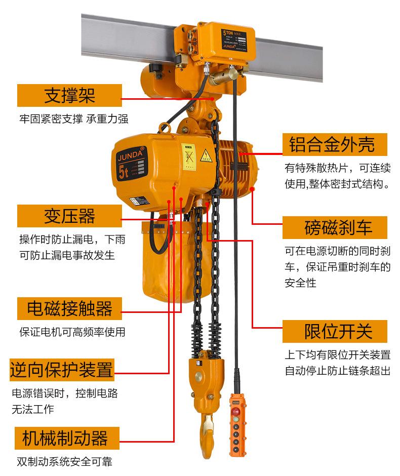 Polipasto Eléctrico de Cadena Tipo Cabeza Fantasma 380V Grúa de Elevación de Cadena Polipasto Eléctrico Fijo Corredizo