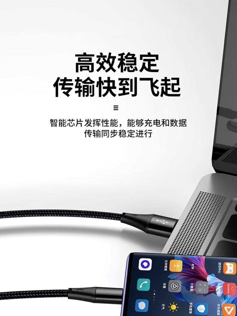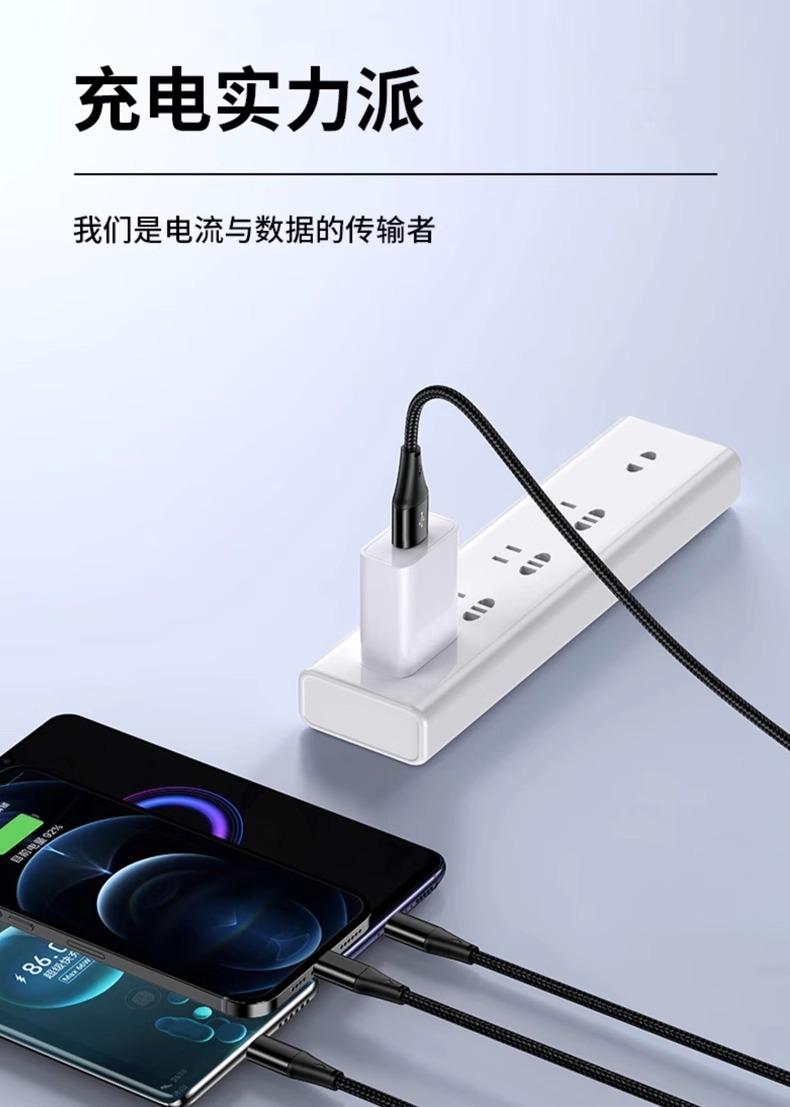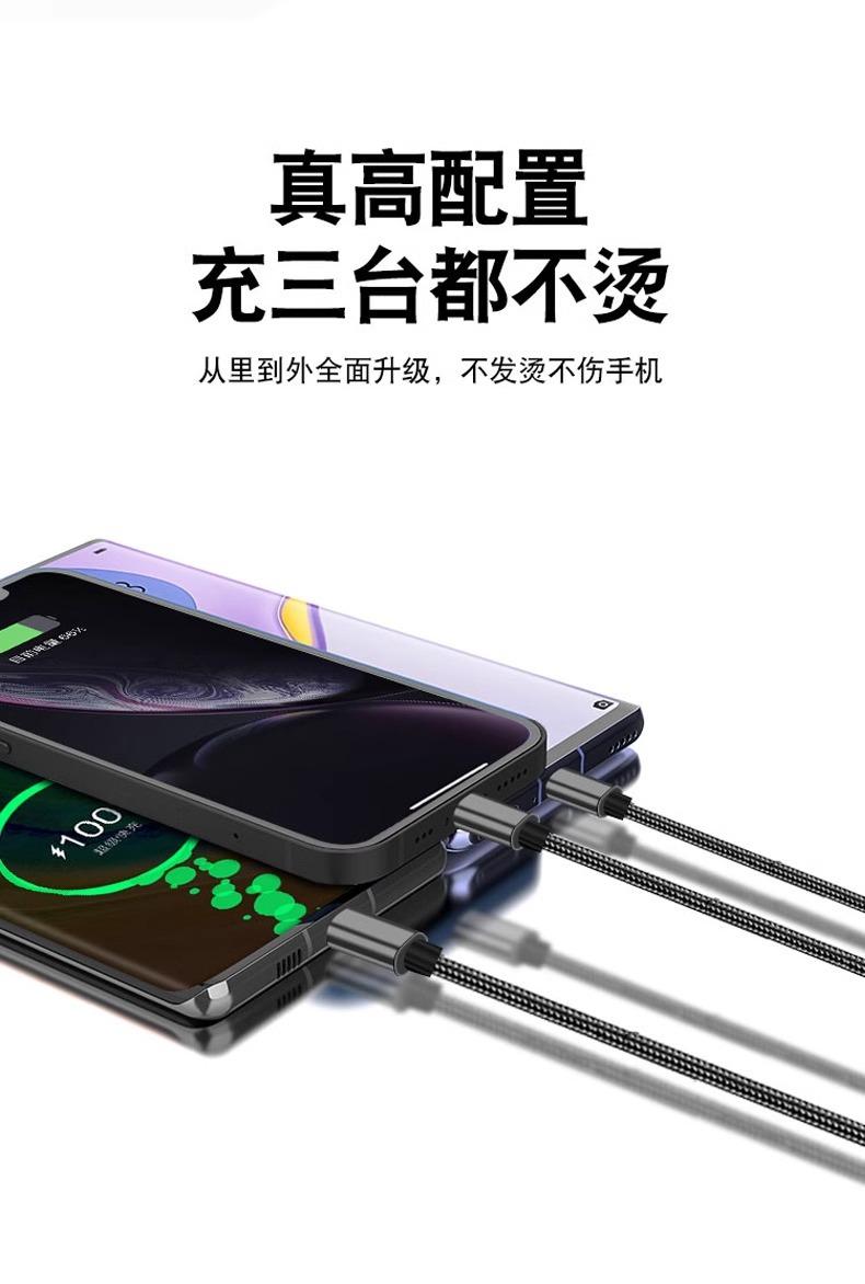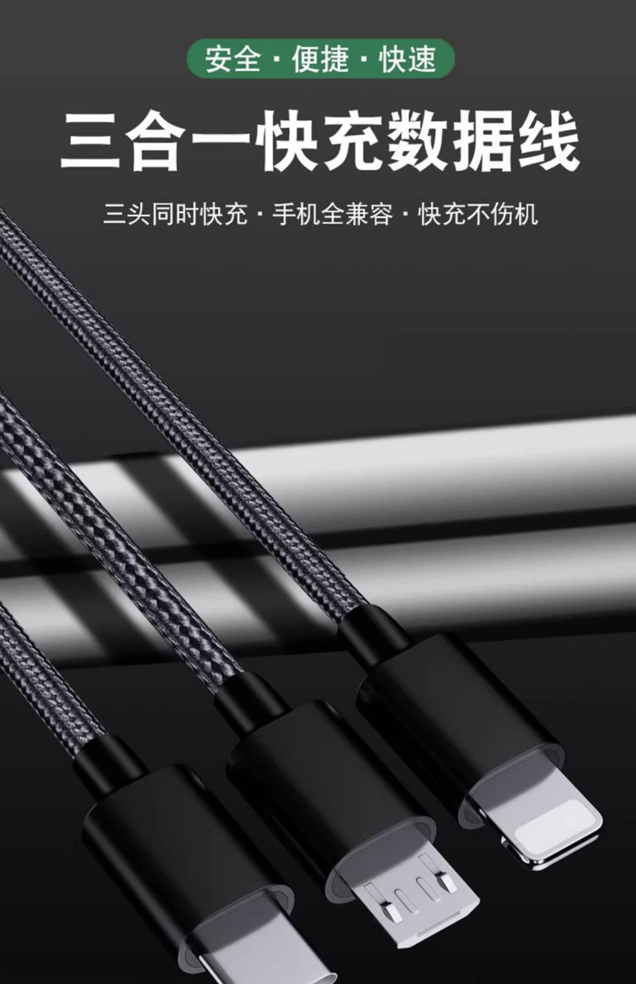 Compra Cable de carga uno a tres, tejido tres en uno, para cable de datos de carga súper rápida tipo C de Apple y Huawei, logotipo de regalo. al por mayor en Joom.pro