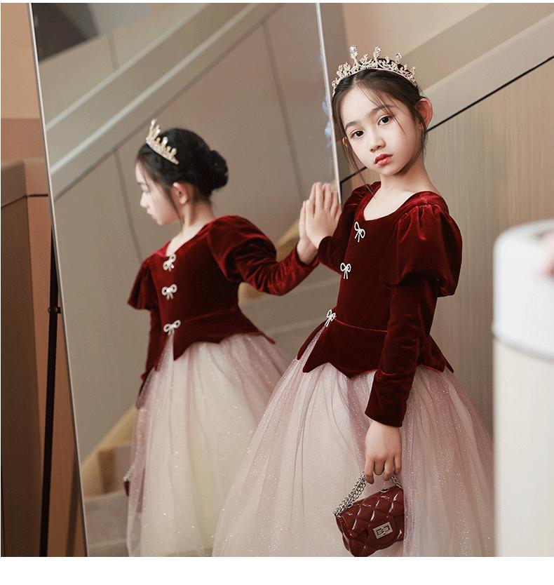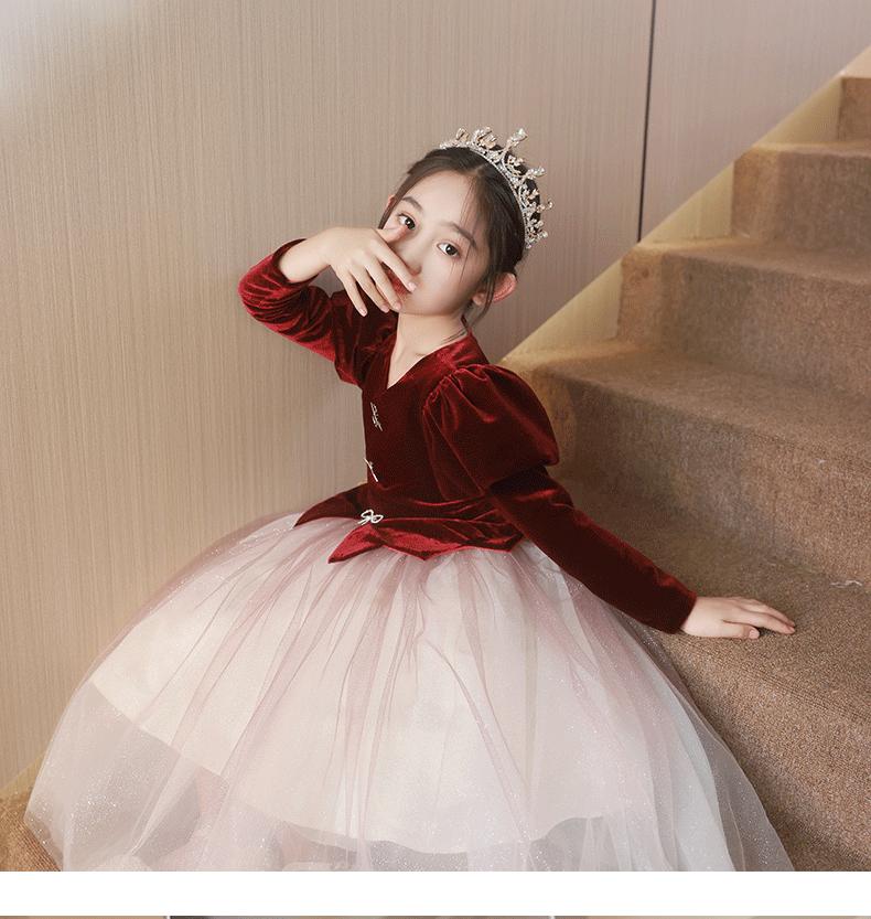 Vestido de princesa para niña de las flores, vestido de boda infantil, vestido de noche para anfitriona, actuación de piano, vestido de manga larga para niña occidental