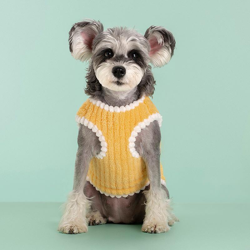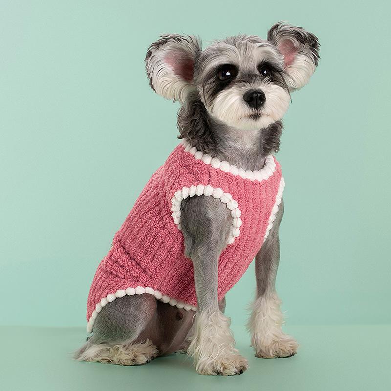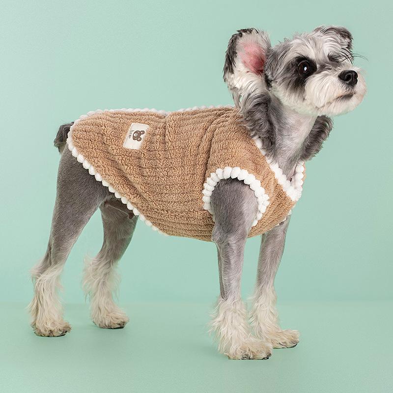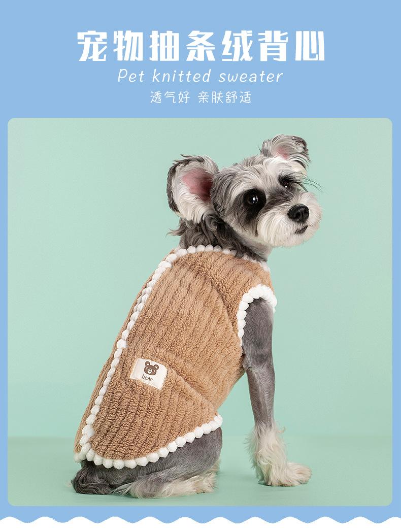 Ropa para perros y gatos de tamaño pequeño y mediano de otoño e invierno, cárdigan grueso y cálido, chaleco de terciopelo a rayas, suministros para mascotas al por mayor