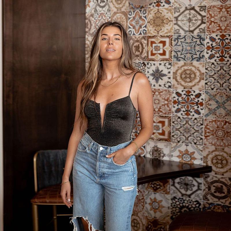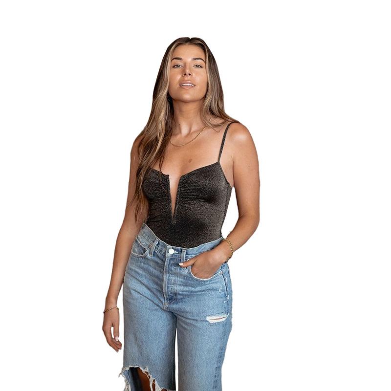 Estilo europeo y americano 2022 primavera y verano nuevo mono de mujer con cuello en V sexy sin espalda camiseta ajustada de moda ropa exterior de mujer