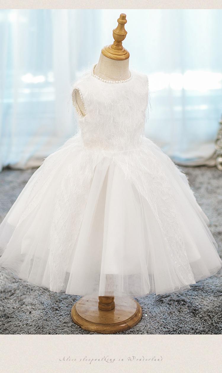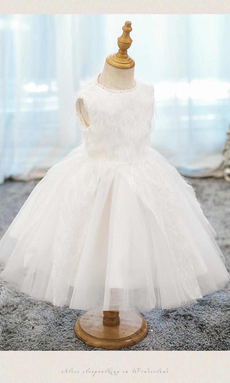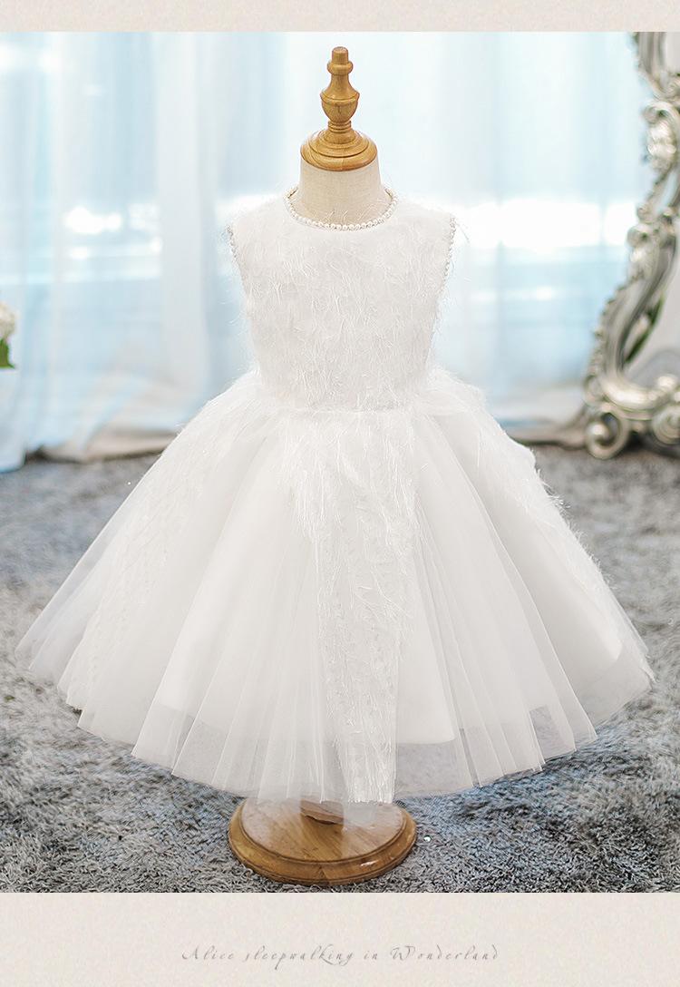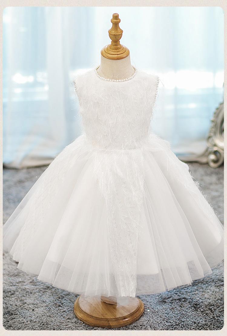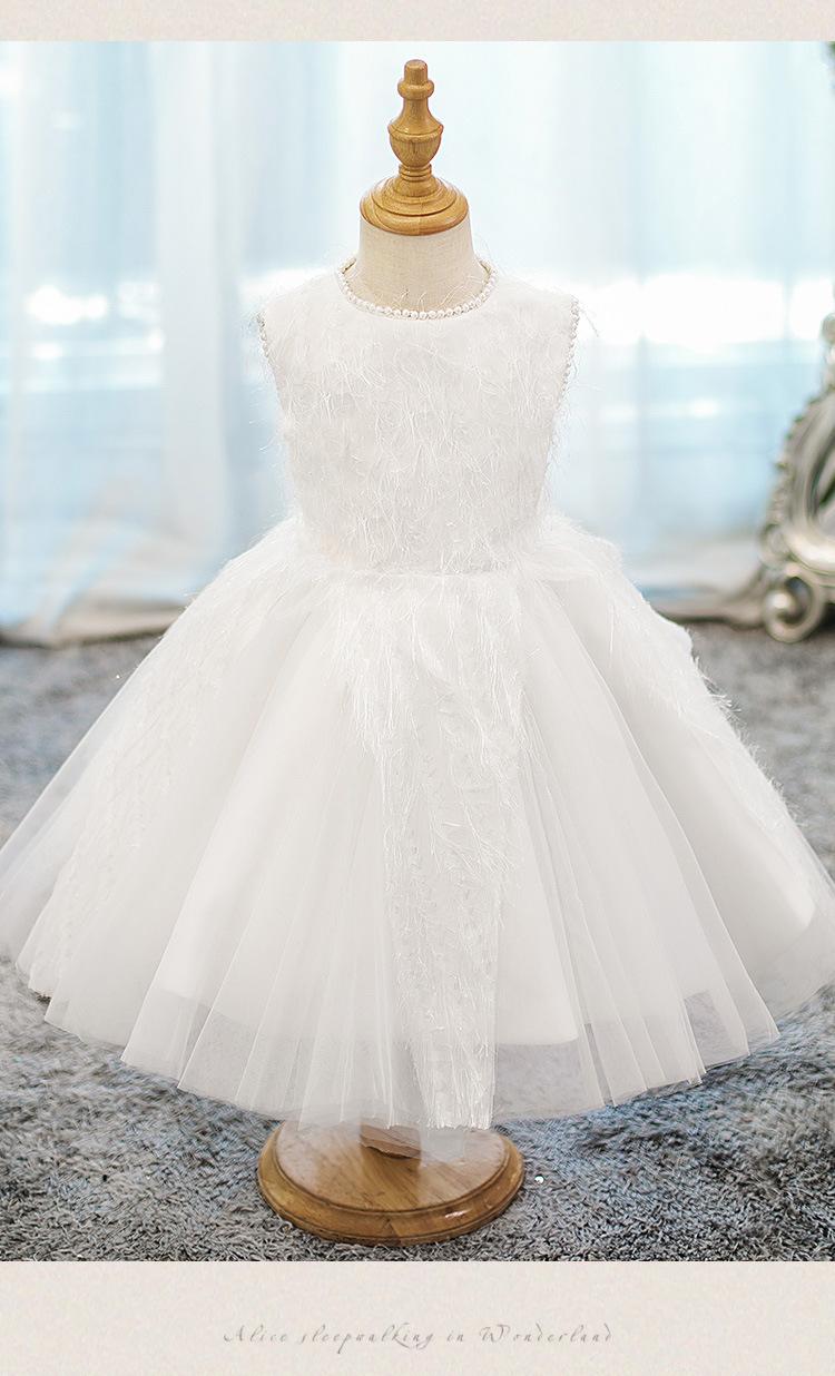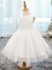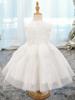 Vestido de princesa blanco para niñas, sin mangas, de malla, abullonado, de un año, con falda de princesa