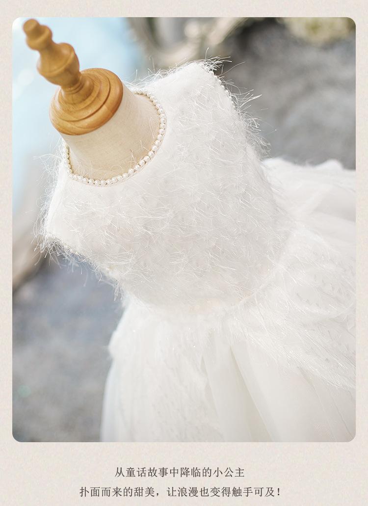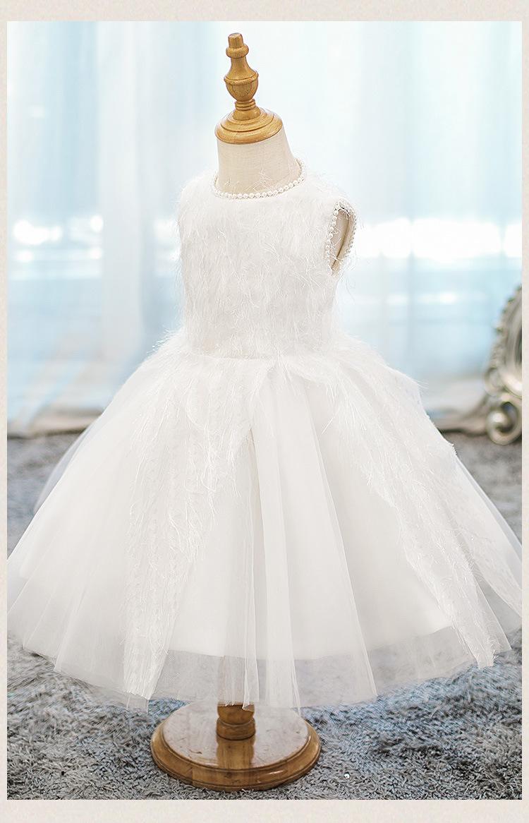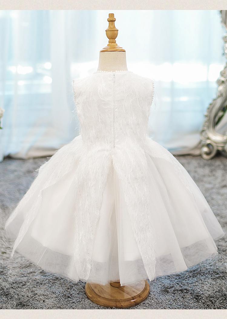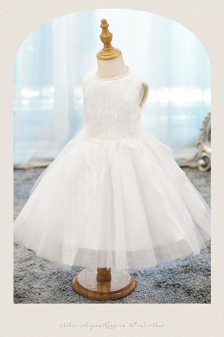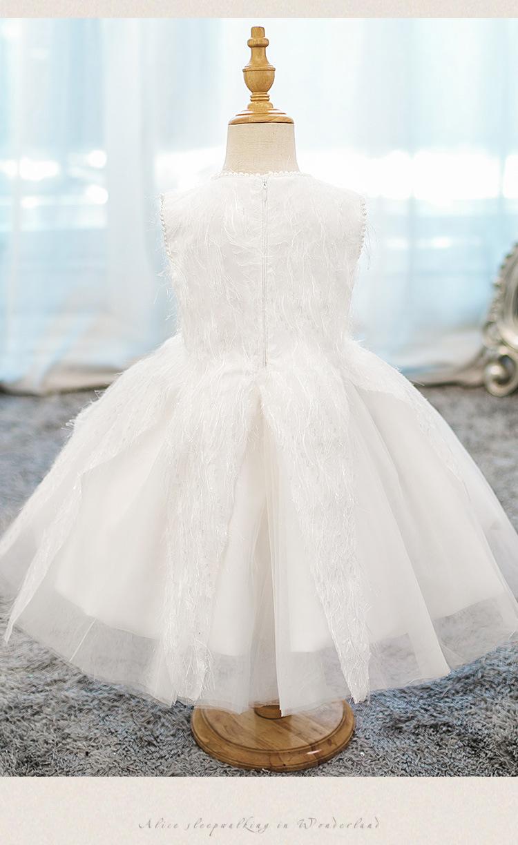 Vestido de princesa blanco para niñas, sin mangas, de malla, abullonado, de un año, con falda de princesa