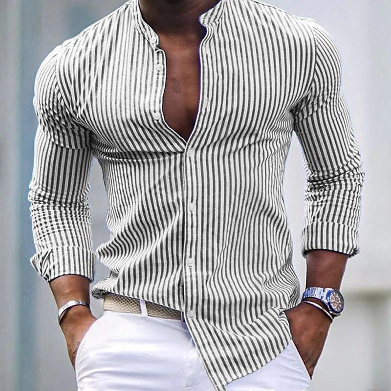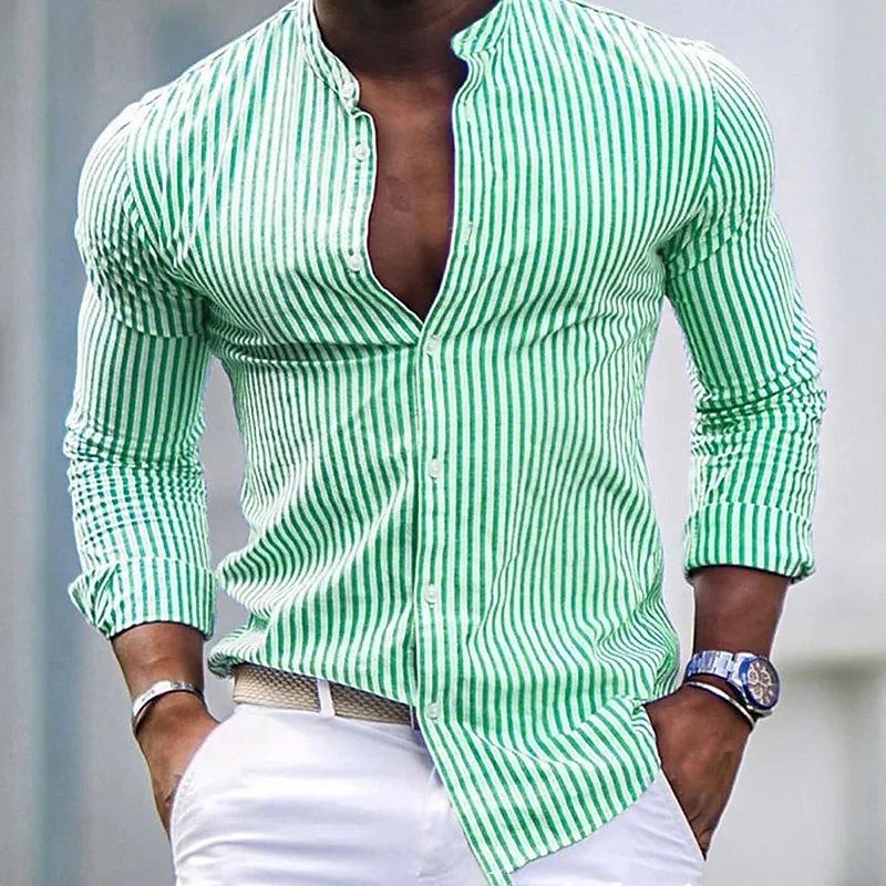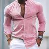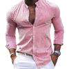 Camisa informal de manga larga a rayas para hombre, juvenil, de Amazon, con cuello vertical, talla europea, de moda, para comercio exterior transfronterizo
