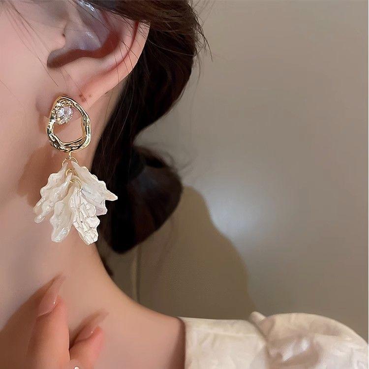 Pendientes largos y grandes con diseño de concha irregular y personalidad exagerada únicos para mujer, pendientes de temperamento con diseño de nicho de Corea del Sur de verano