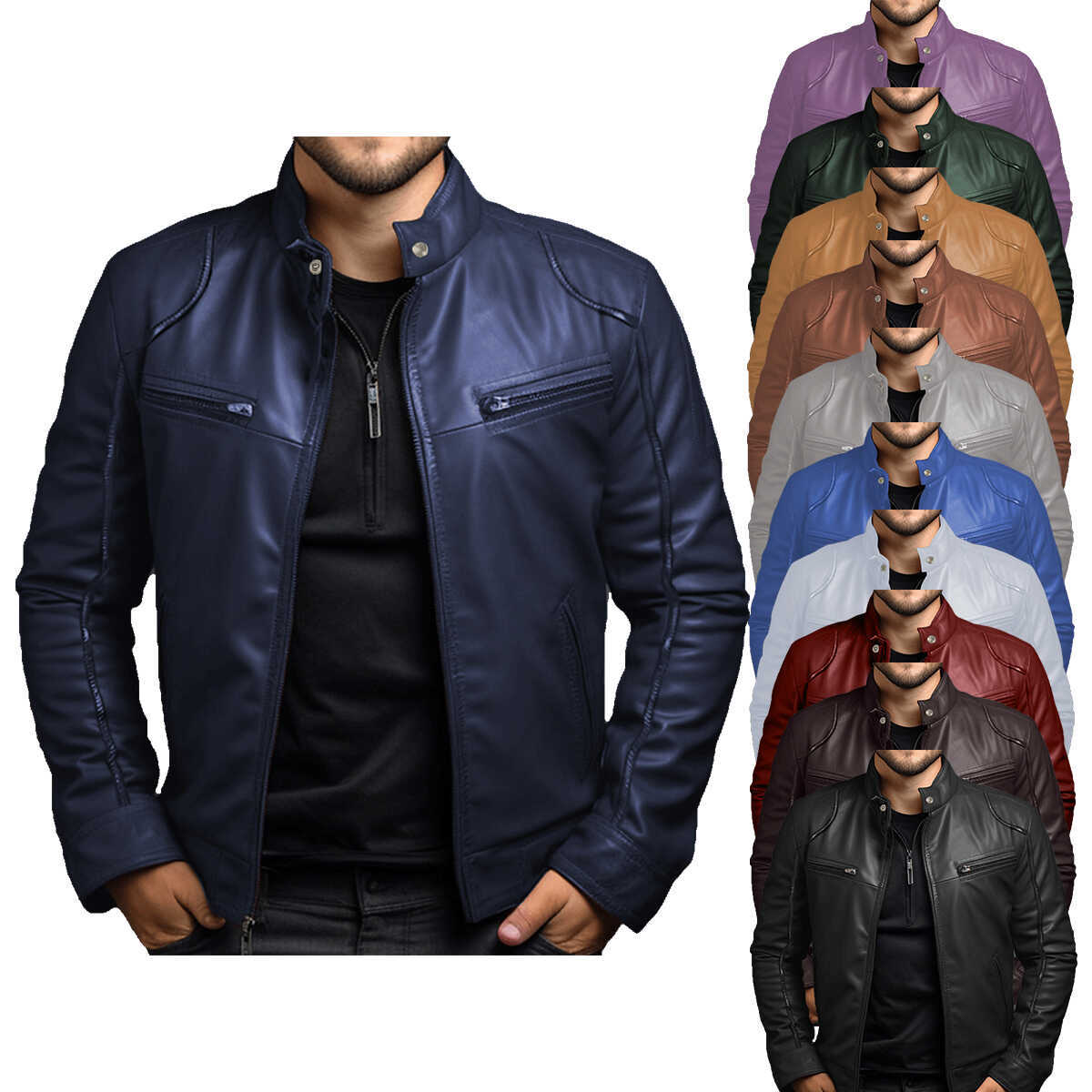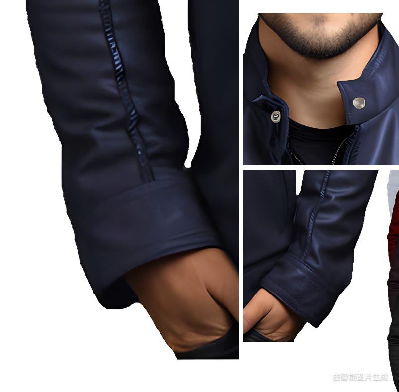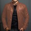 Chaqueta de cuero sintético para hombre, estilo informal, de negocios, con cuello entallado y cremallera, de comercio exterior, 2024
