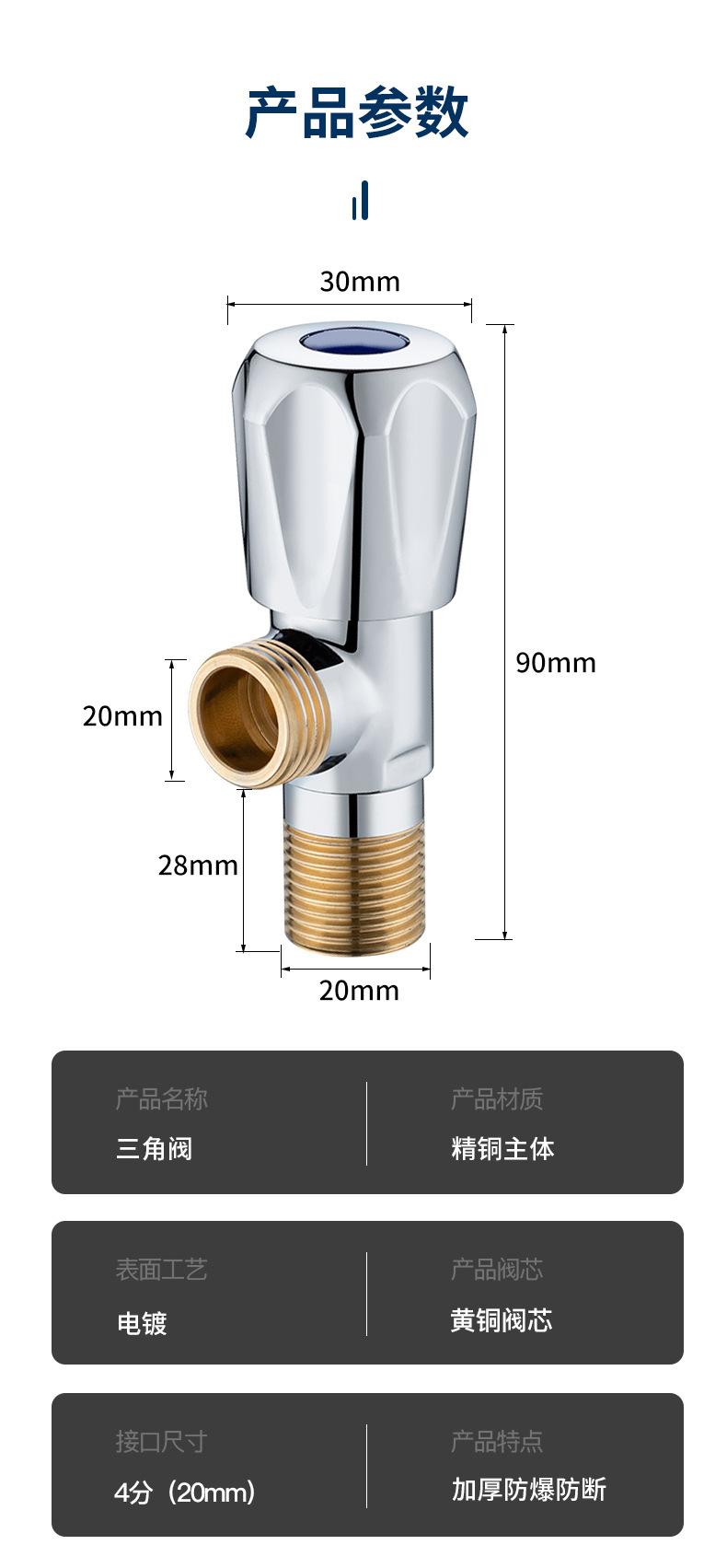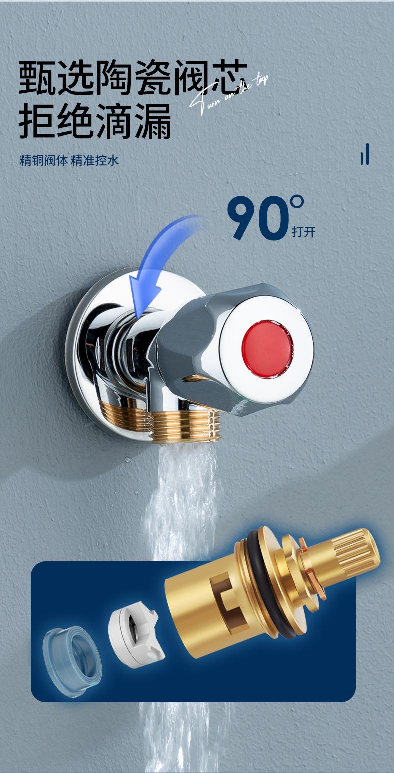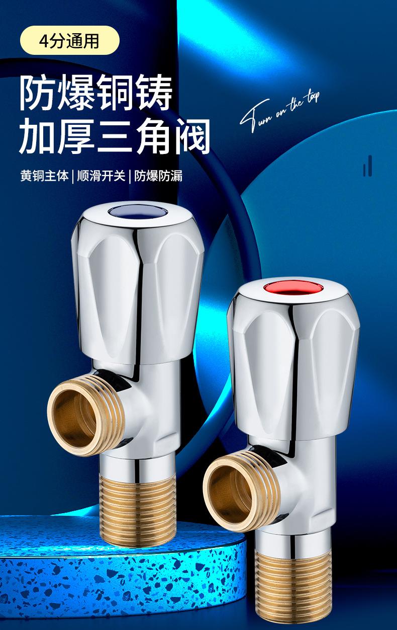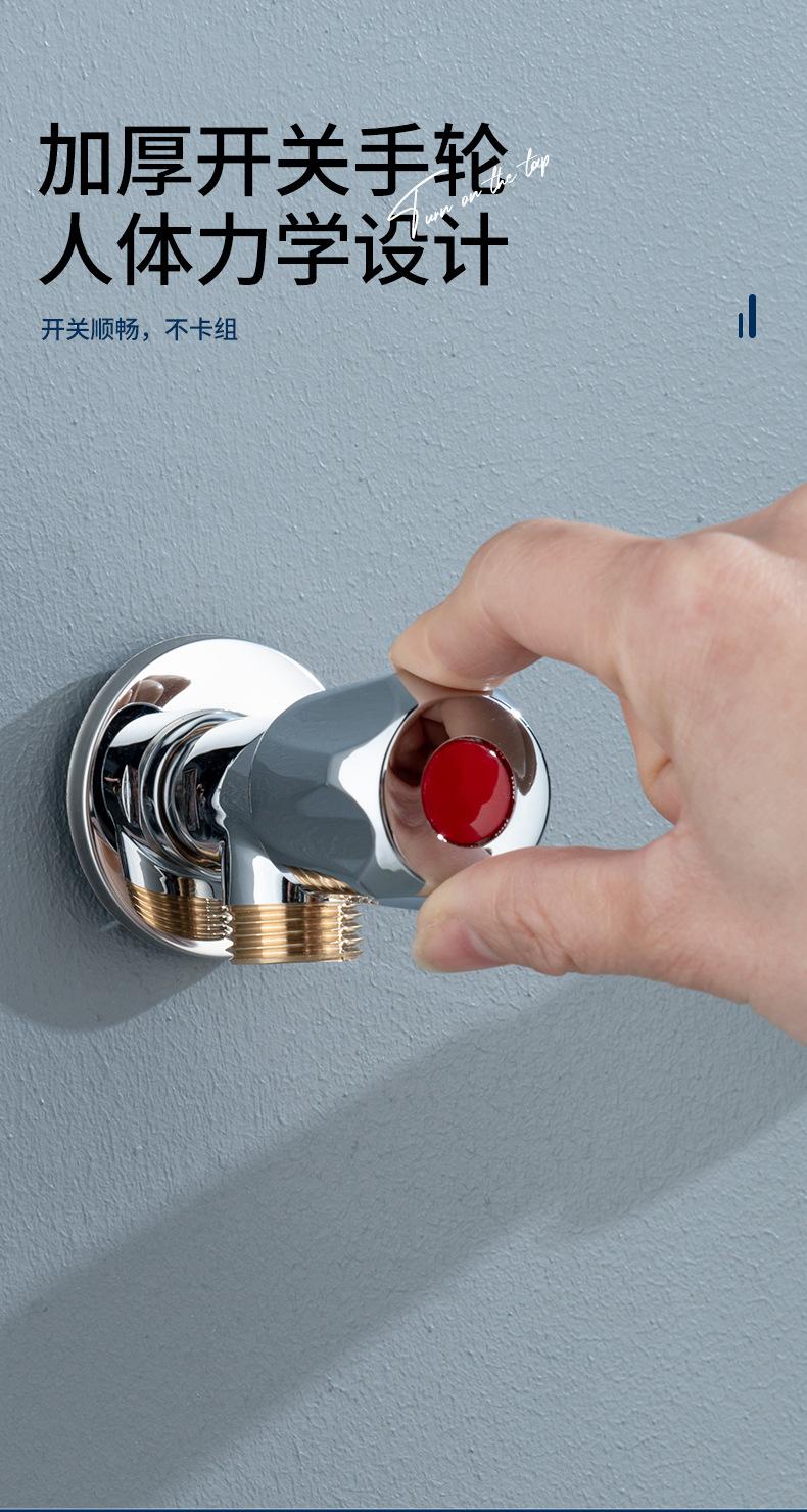 Compra Válvula de triángulo totalmente de cobre para calentadores de agua fría y caliente, válvula de cierre para inodoro de acero inoxidable 304, válvula angular de conmutación de 1/2 pulgada con rueda hexagonal al por mayor en Joom.pro
