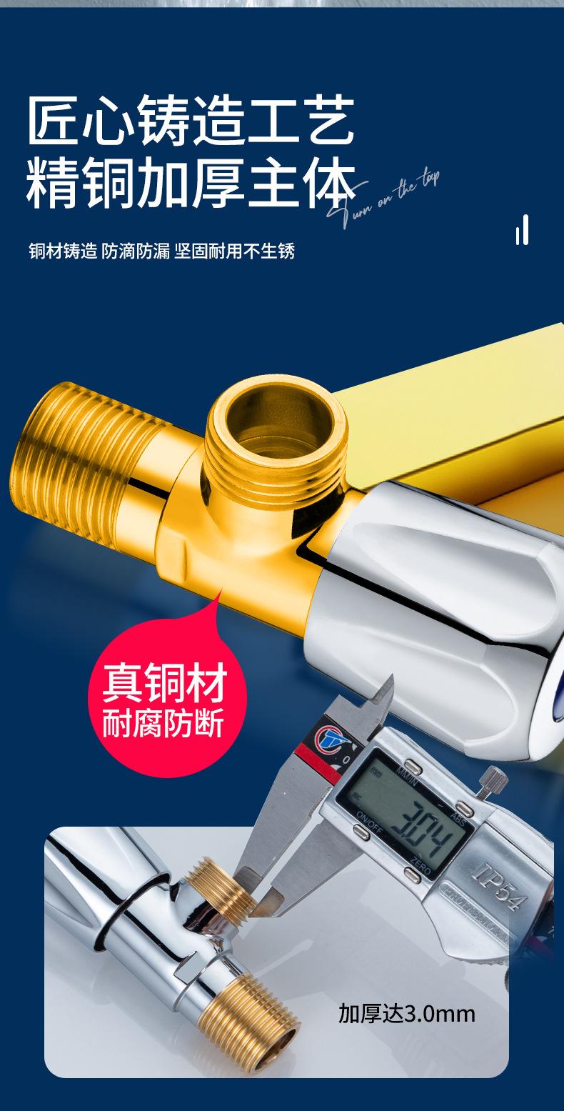 Válvula de triángulo totalmente de cobre para calentadores de agua fría y caliente, válvula de cierre para inodoro de acero inoxidable 304, válvula angular de conmutación de 1/2 pulgada con rueda hexagonal