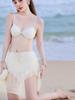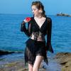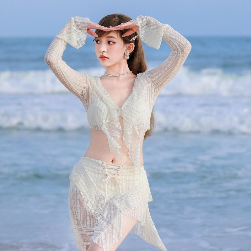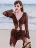 Bikini sexy traje de baño para mujer con abertura de manga larga blusa de tres piezas color sólido hada vacaciones aguas termales traje de baño playa