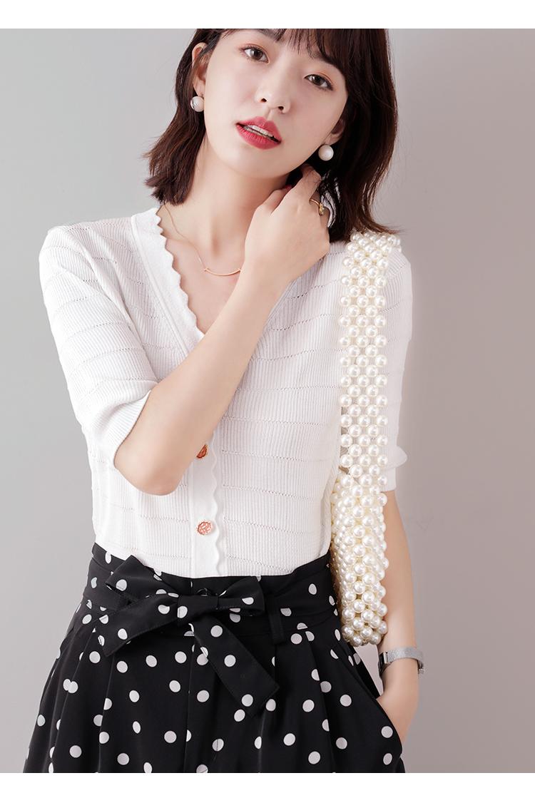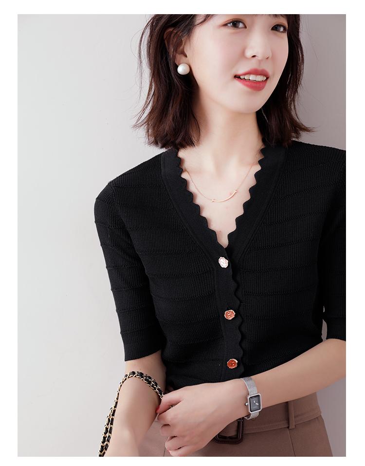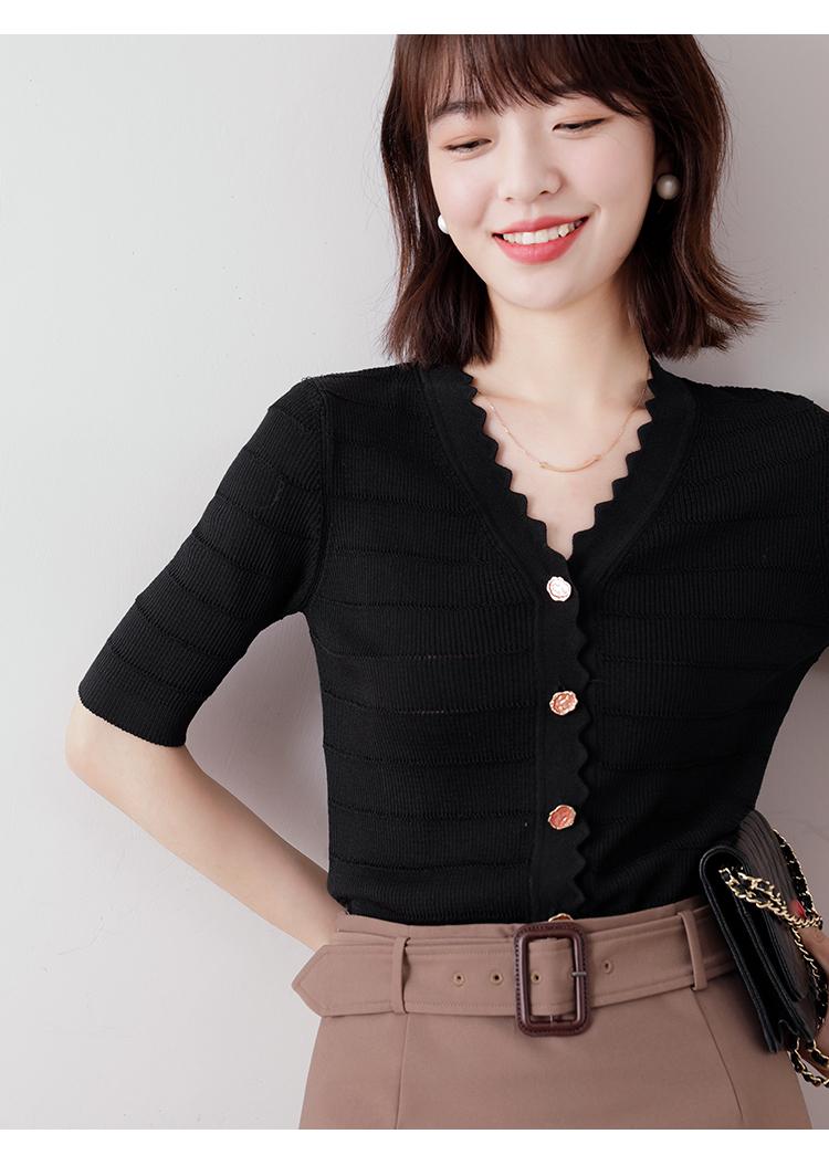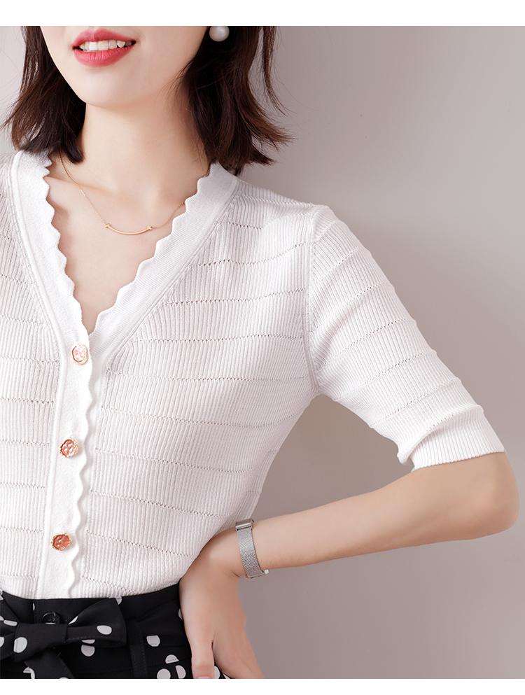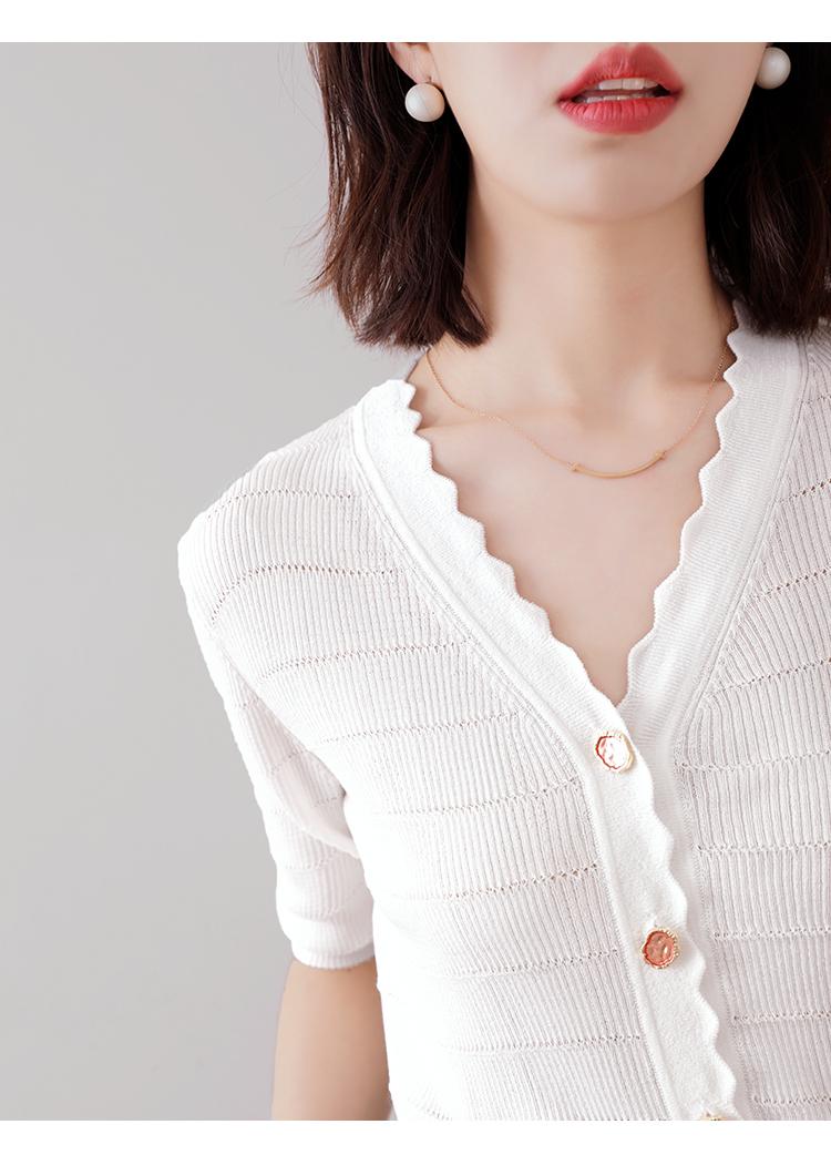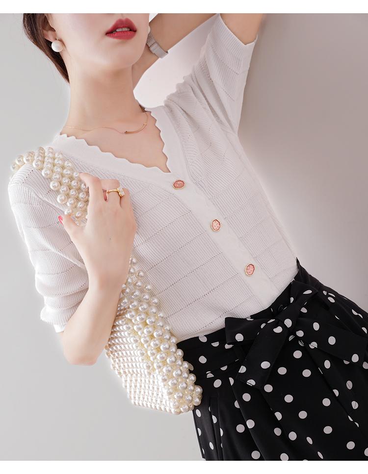 Cuello de encaje con cuello en V con adorno de botón