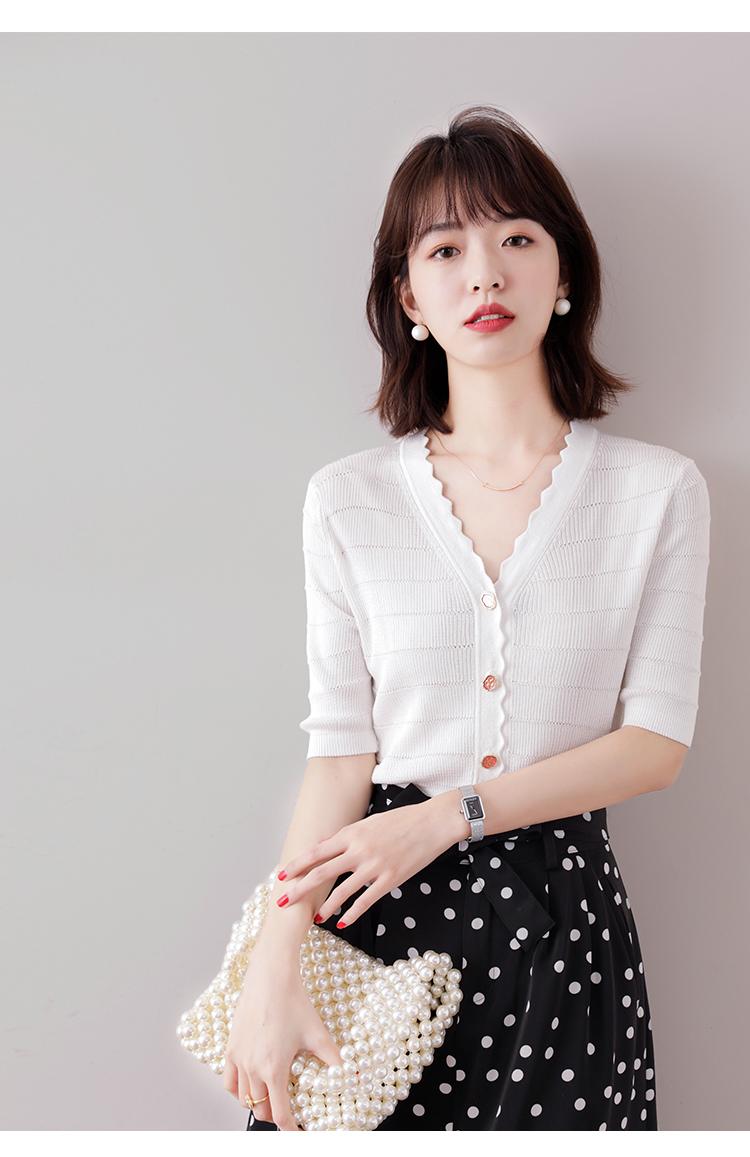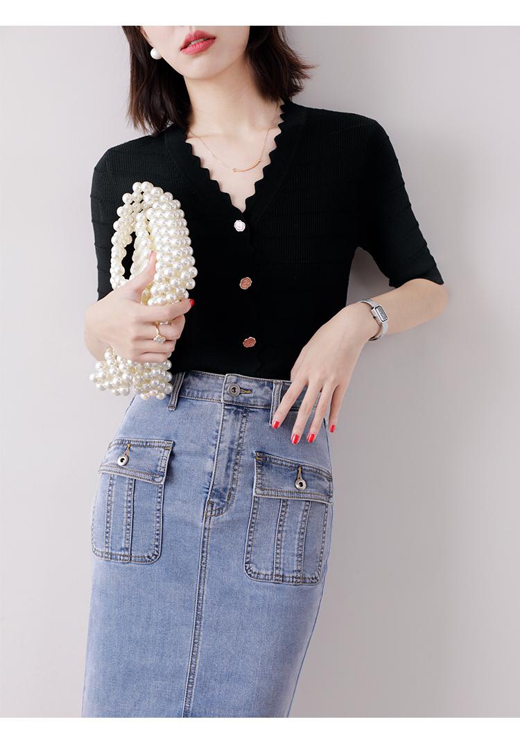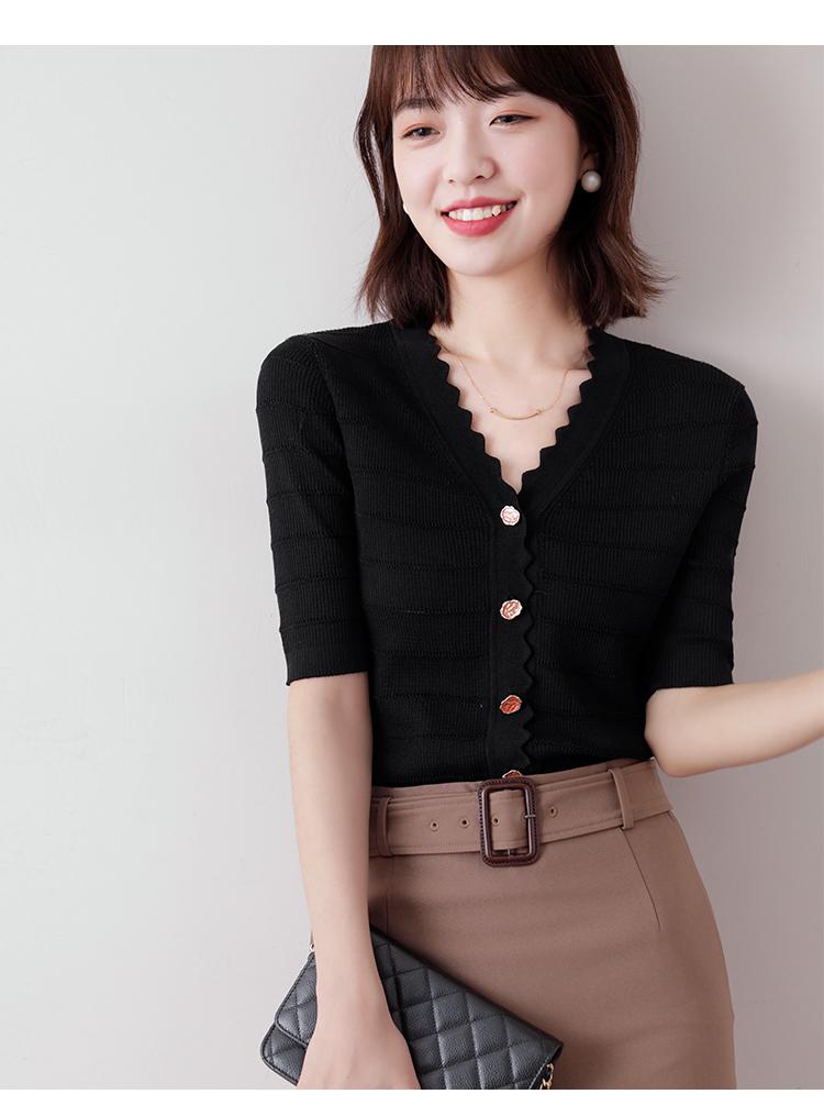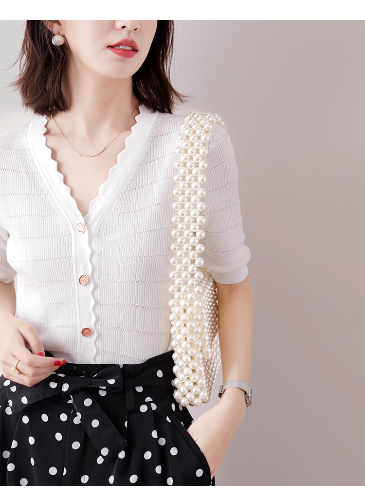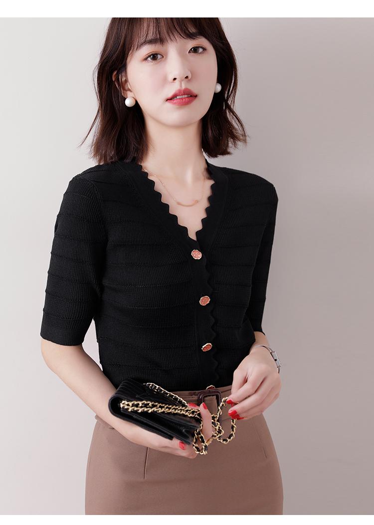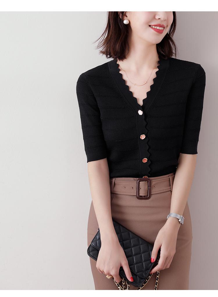 Cuello de encaje con cuello en V con adorno de botón