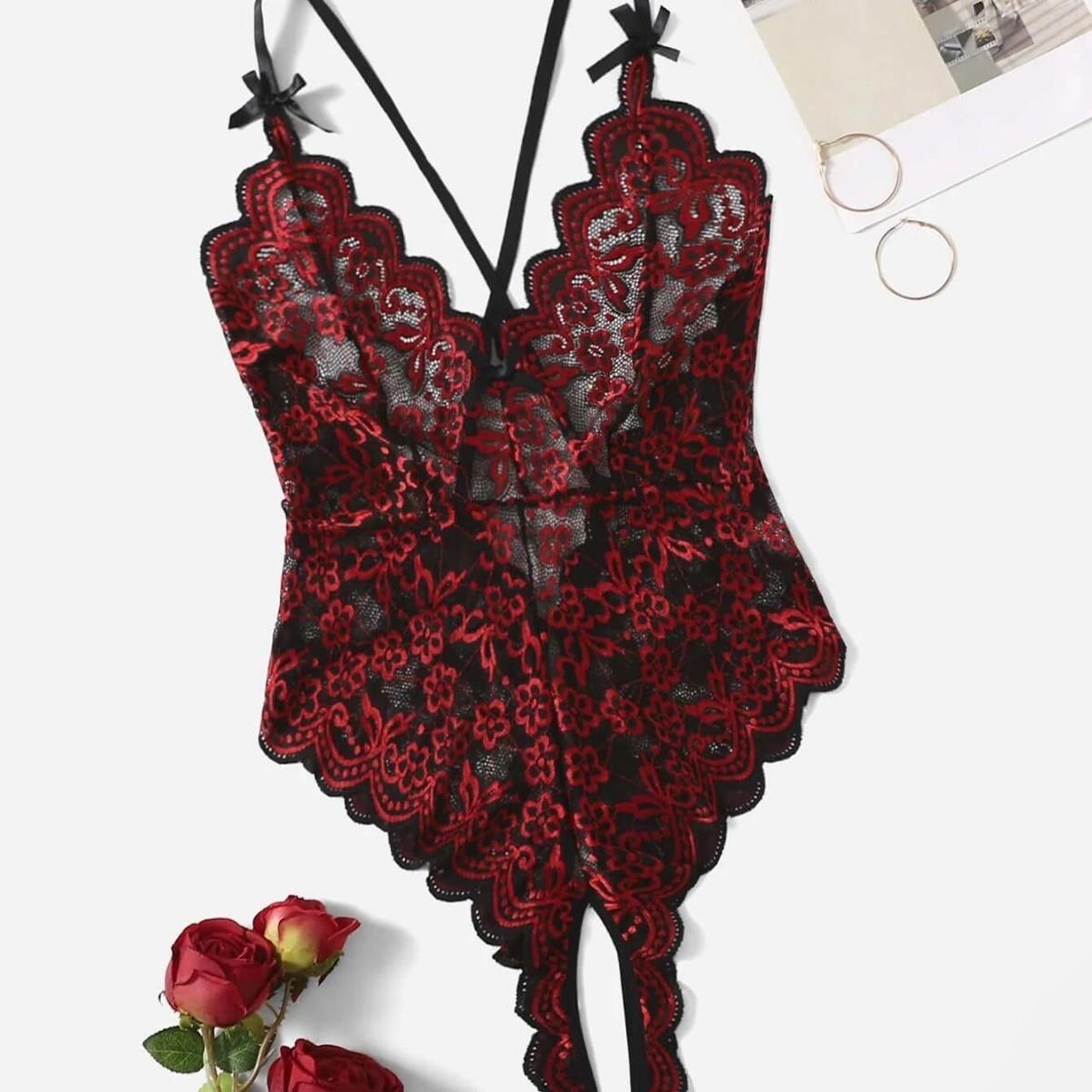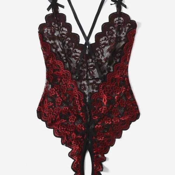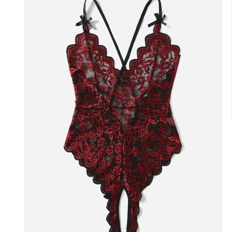 Nuevo Mono de Encaje Bicolor de Lencería Sexy Multicolor Caliente Sexy Entrepierna Abierta Pijama de Tentación Sexy Gratuita para Mujeres