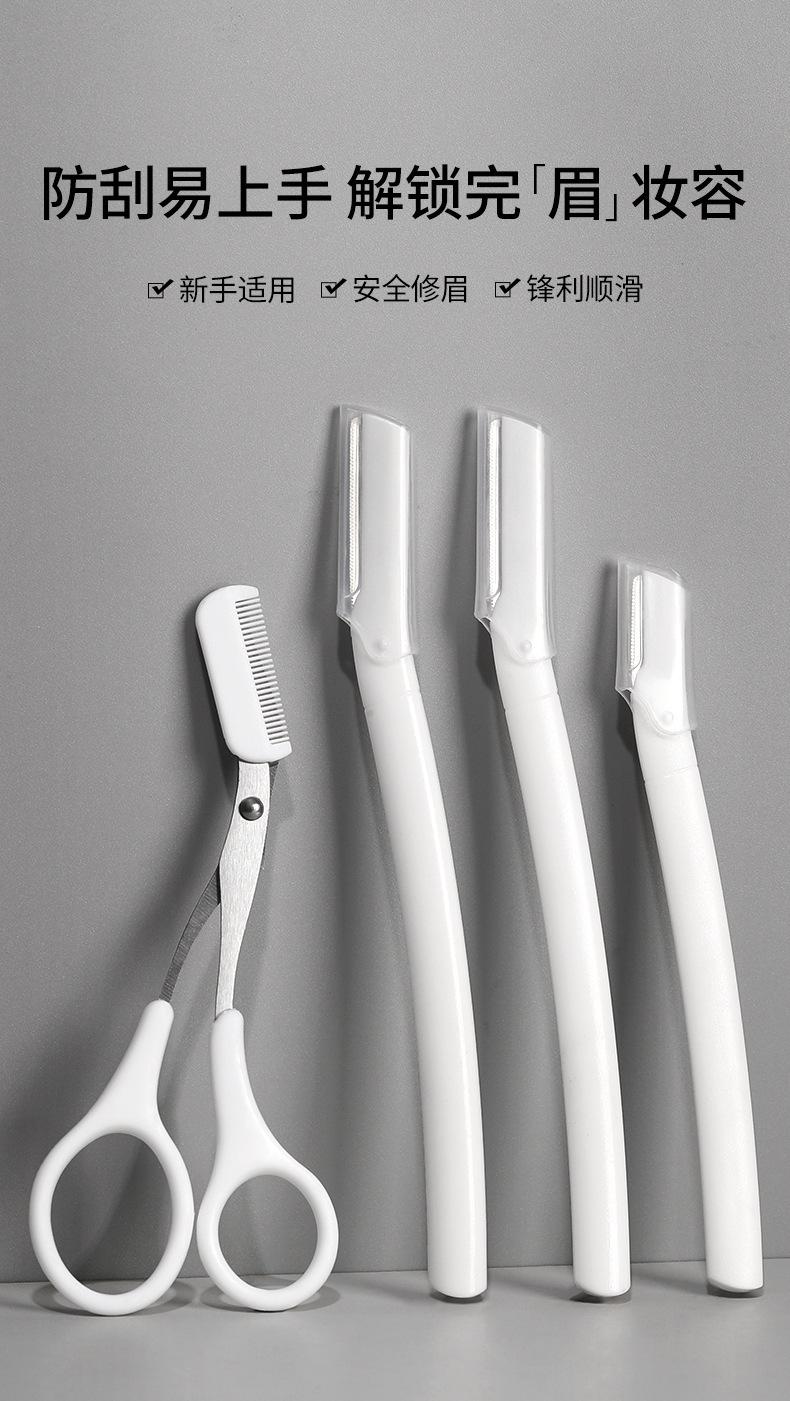 Cuchillo para recortar cejas de seguridad antiarañazos, cuchillo macro para afeitar cejas con peine pequeño, tijeras para cejas, cuchillo para recortar cejas de acero inoxidable, herramienta de maquillaje de belleza