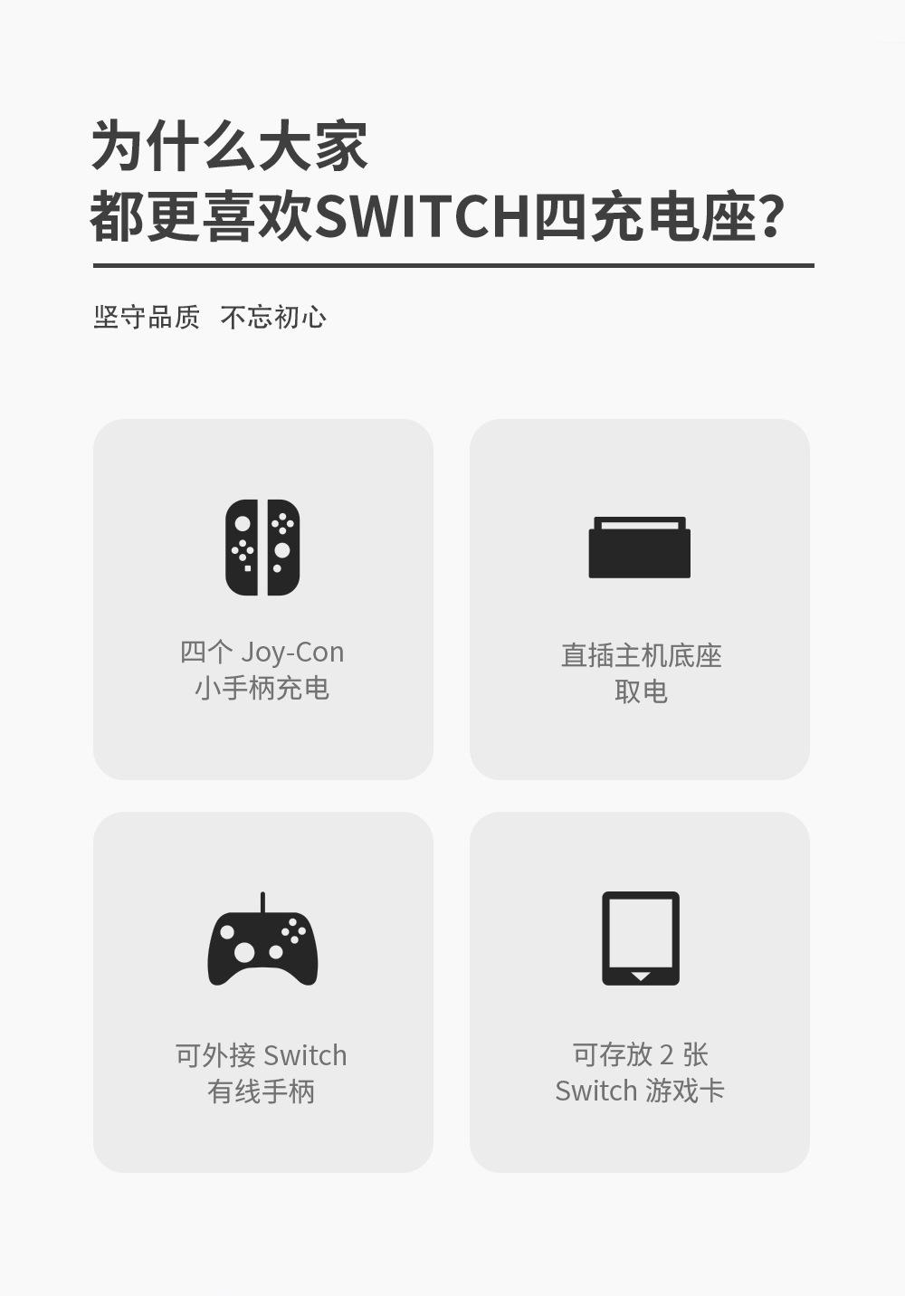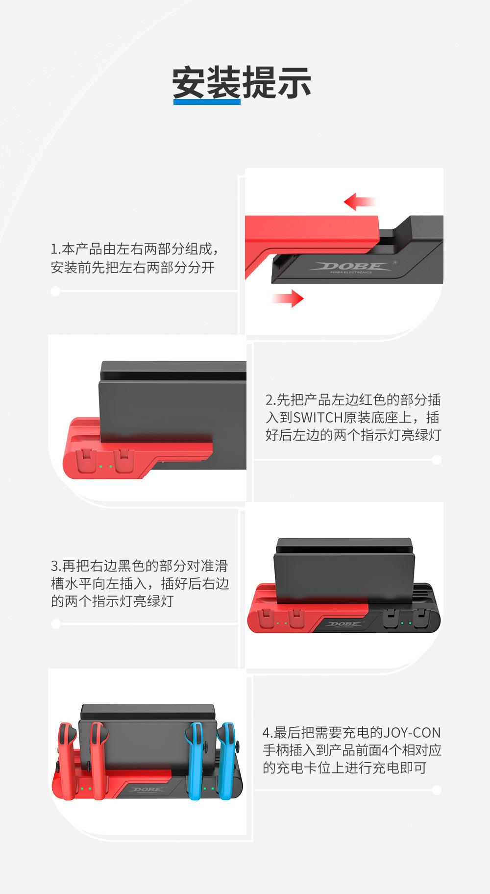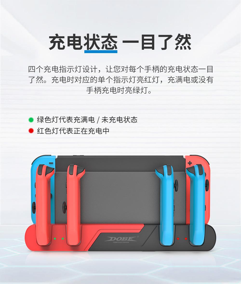 6. Hay un puerto hembra USB2.0 en la parte posterior del producto con función de transmisión de datos USB2.0. Al usar este producto, no ocupa la interfaz USB 2.0 de la base original. Este puerto se utiliza para mandos cableados externos para jugar. Cuando los cuatro mandos pequeños L/R de Switch (JOY-Con) se están cargando, la corriente de salida de este puerto de salida es de 500MA~800MA. Cuando la corriente de carga total de todos los mandos externos de este producto supera los 1500MA, la salida se apagará automáticamente por protección.