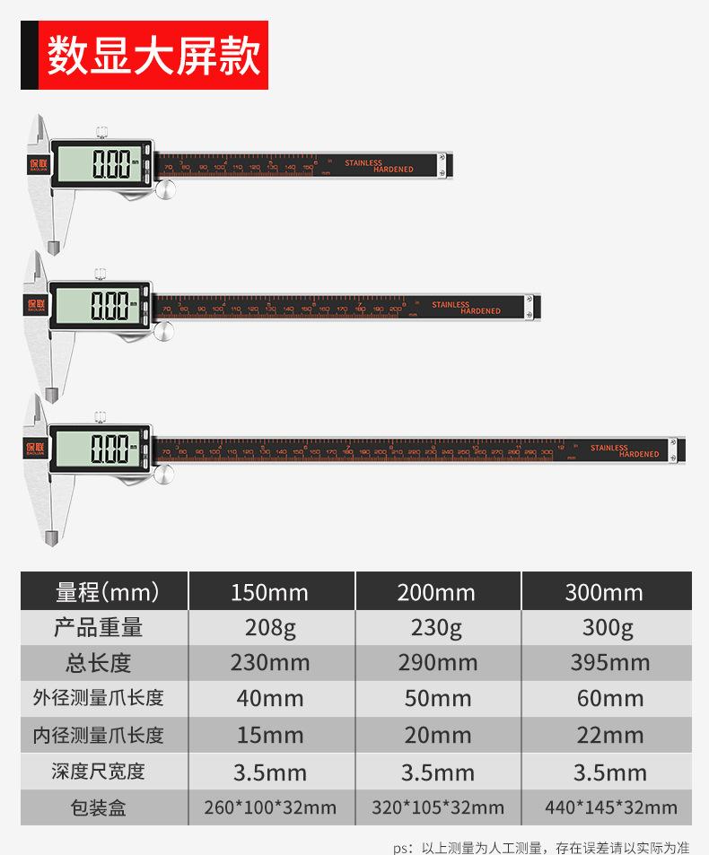 Calibrador Vernier electrónico de acero inoxidable, pantalla digital de alta precisión, grado industrial, para uso doméstico, profundidad de juego pequeña, estándar de aceite de 300 mm