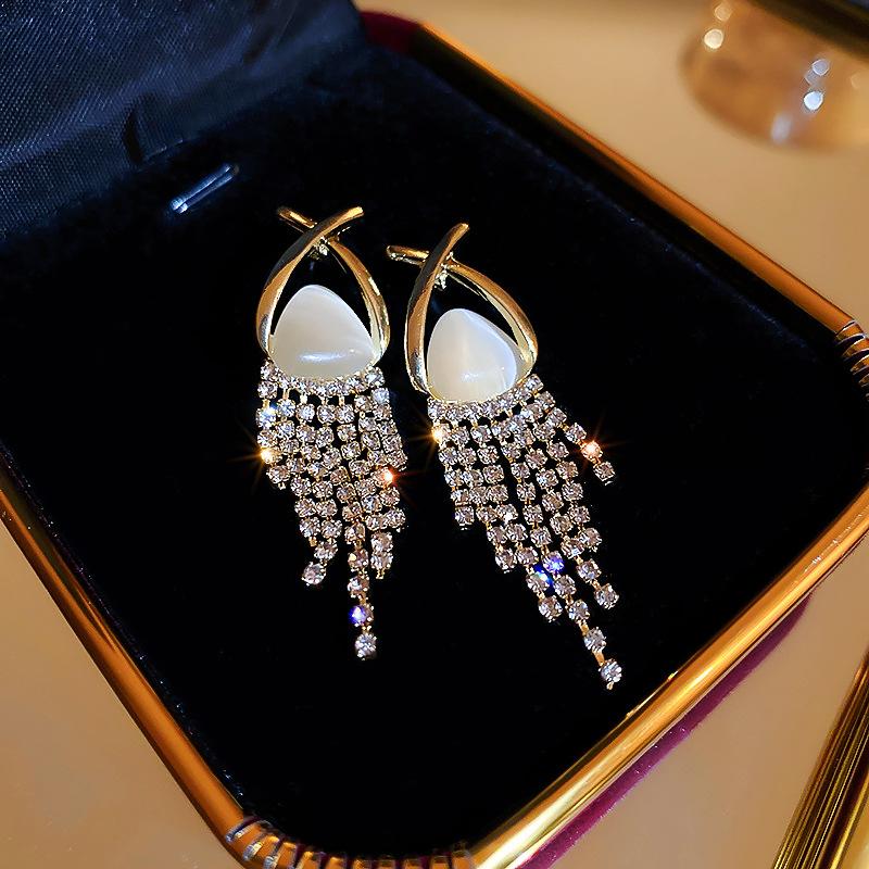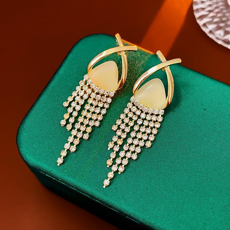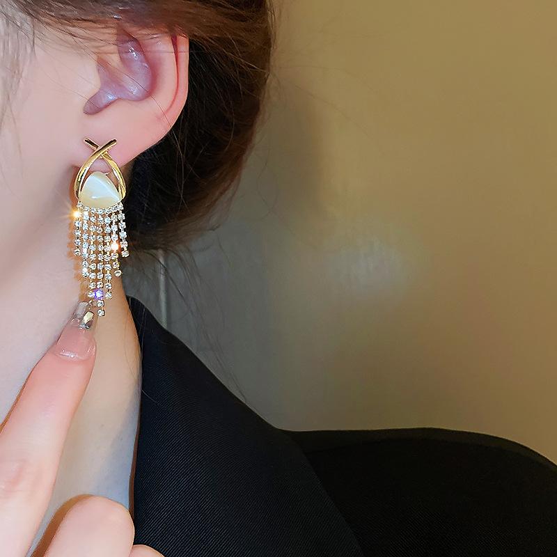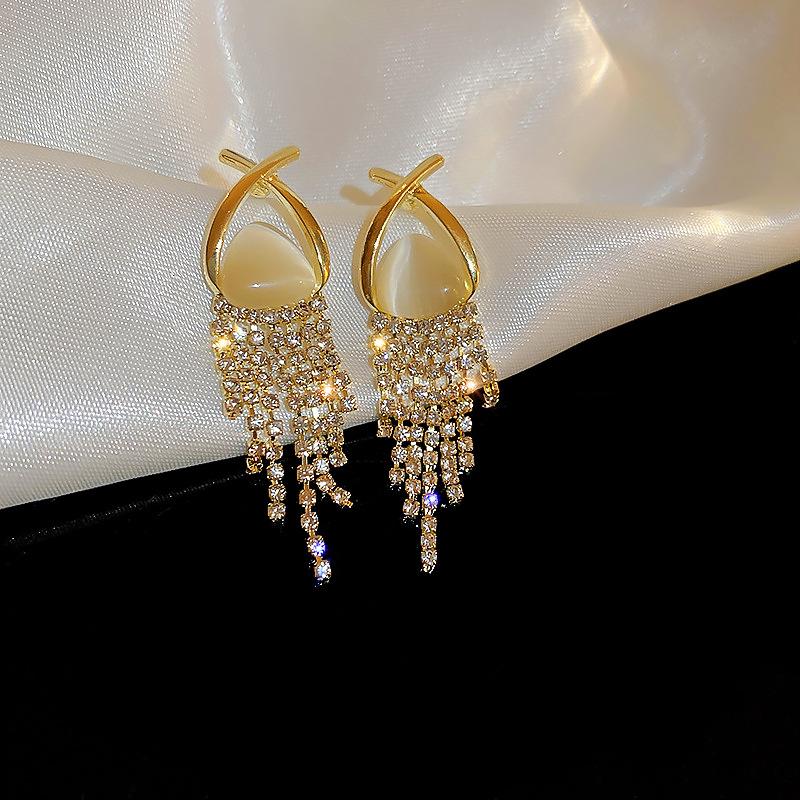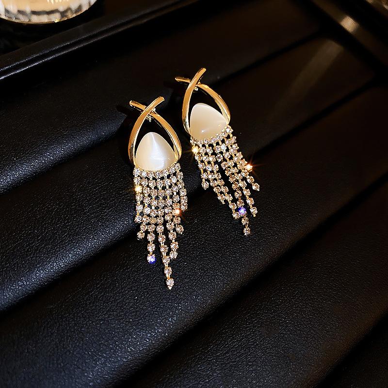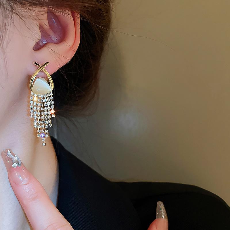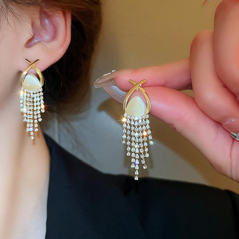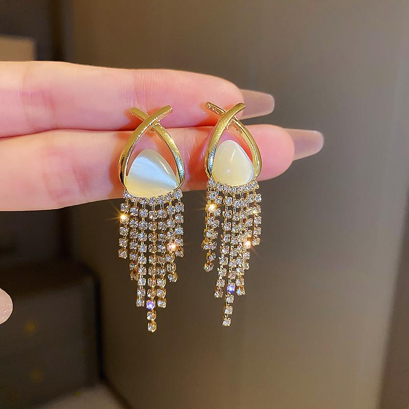 Pendientes de borla de ópalo con aguja de plata S925, elegantes y sencillos, para mujer, diseño de nicho, joyería retro para las orejas, 2023