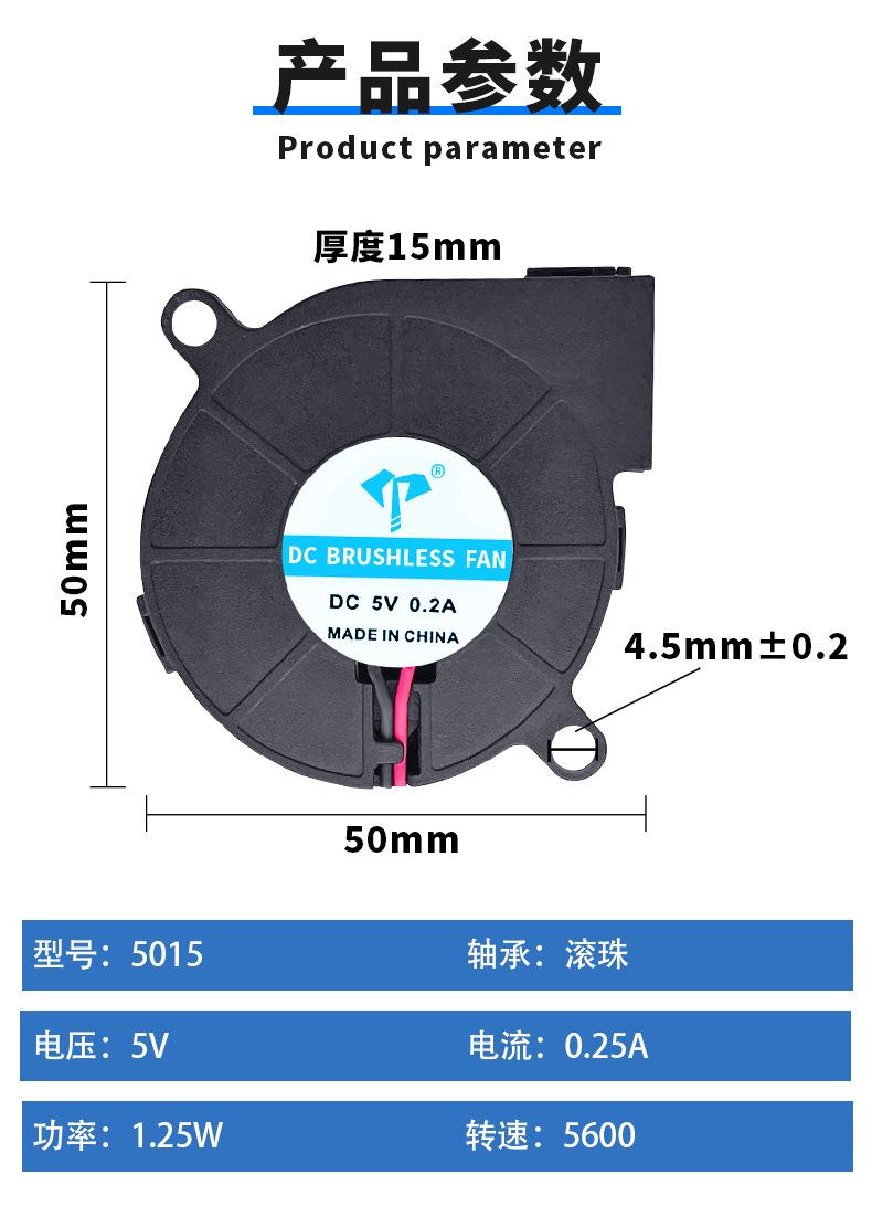 Soplador de turbina Yida DC5015 de 5 V con bola de aceite y conector USB, purificador, humidificador y ventilador de refrigeración.