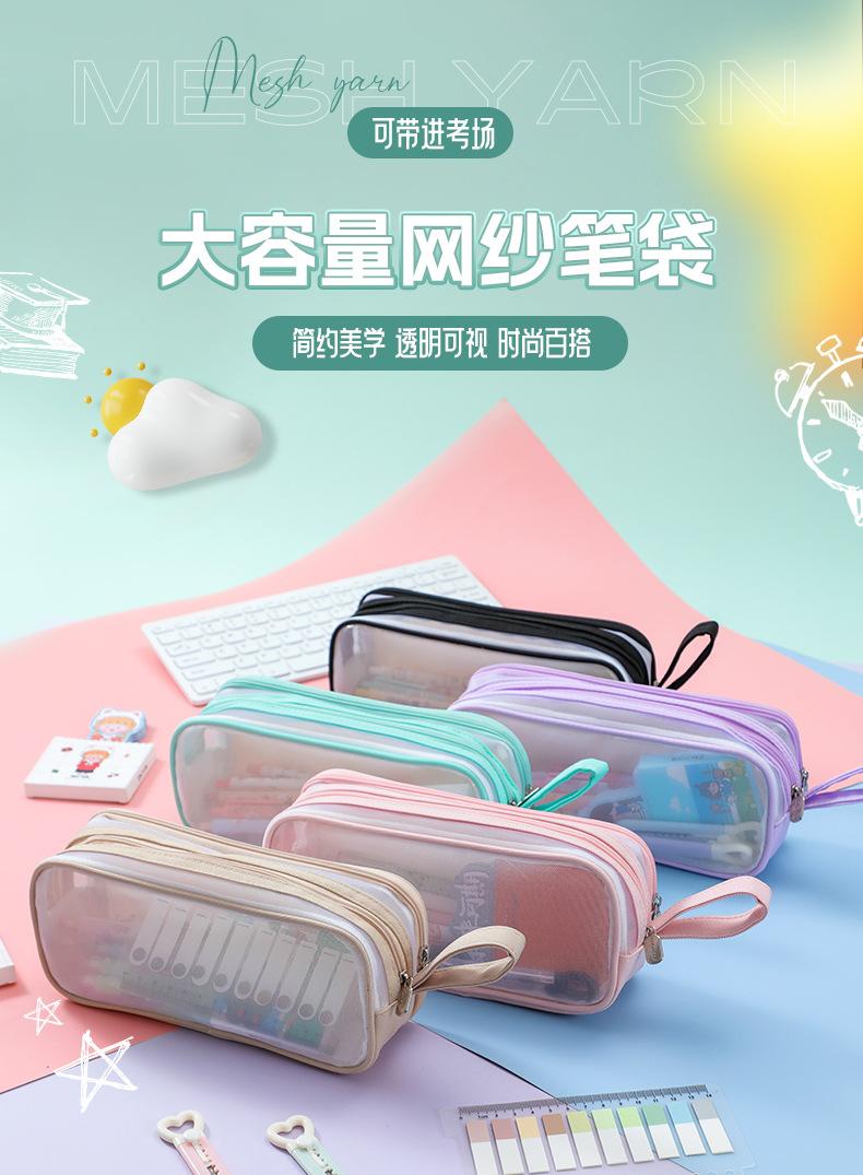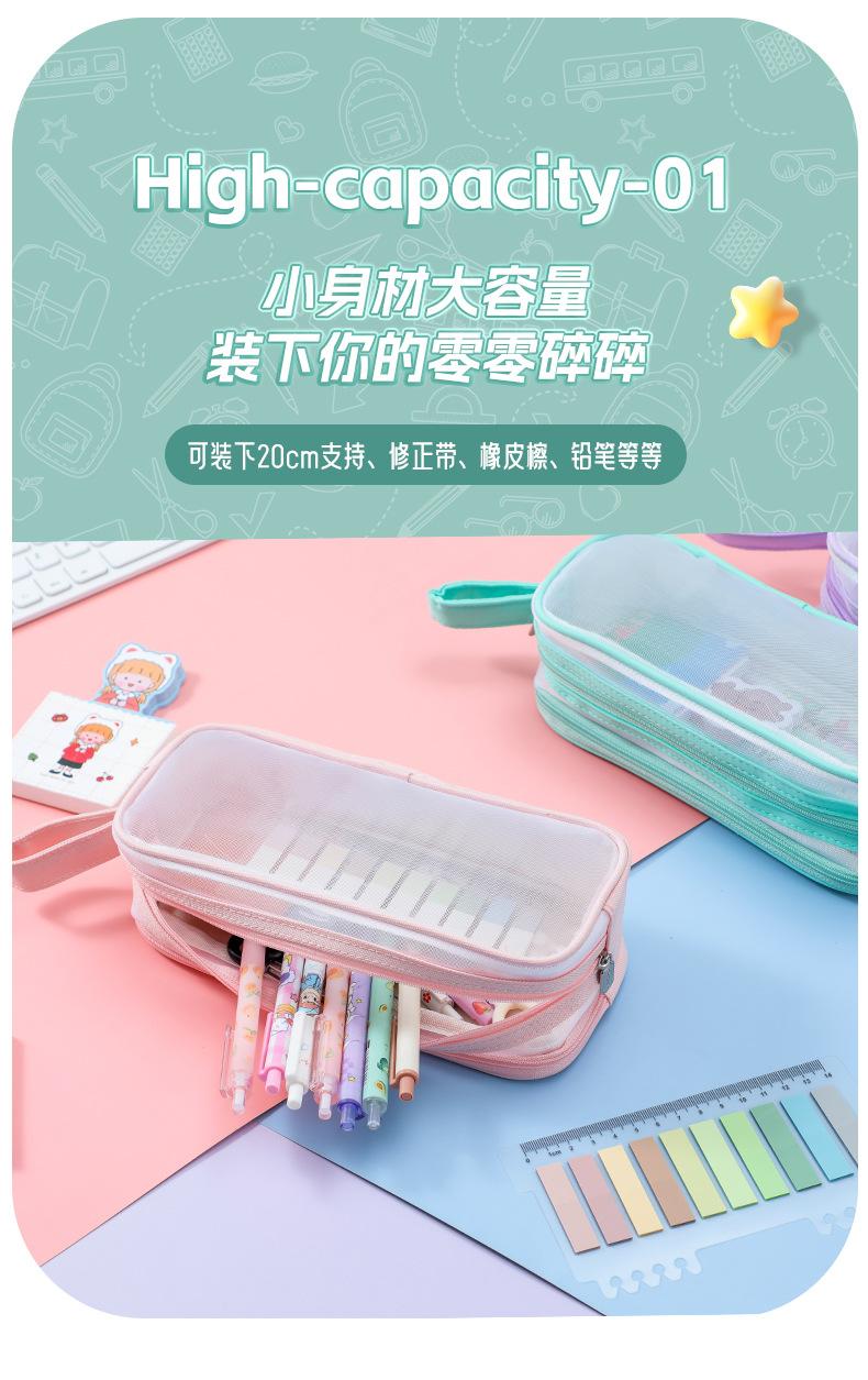624-Black Mesh Pencil Case, 624-light green mesh pencil case, 624-Pink Mesh Pencil Case, 624-Purple Mesh Penci...