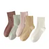 Calcetines desodorante absorbentes de sudor de fibra de bambú para niñas, calcetines de tubo medio de otoño e invierno para damas, calcetines holgados de cintura media, calcetines sin hueso para mujer