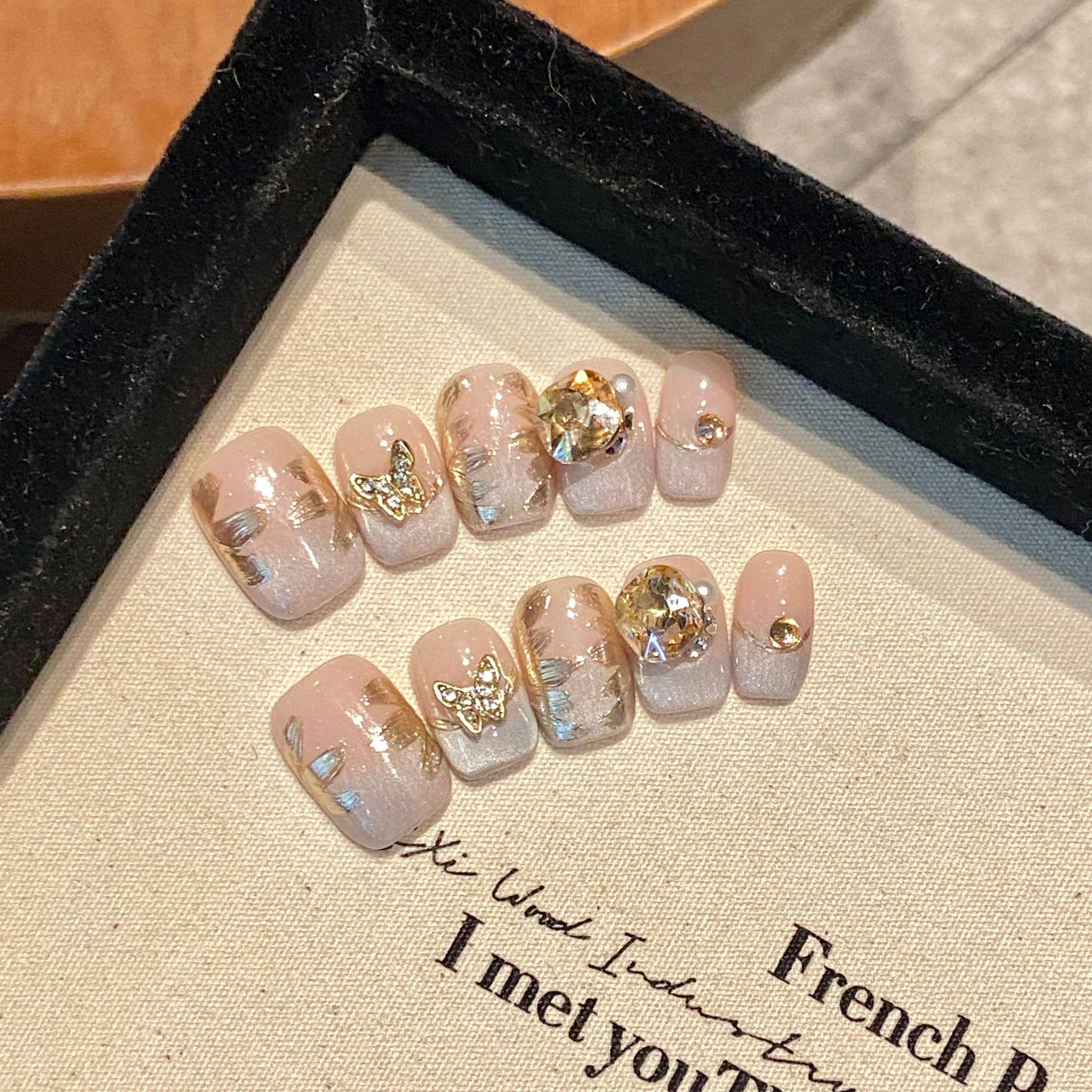 Sweet, French, Simple, Long style, Medium style, Transparent nails, Wearable