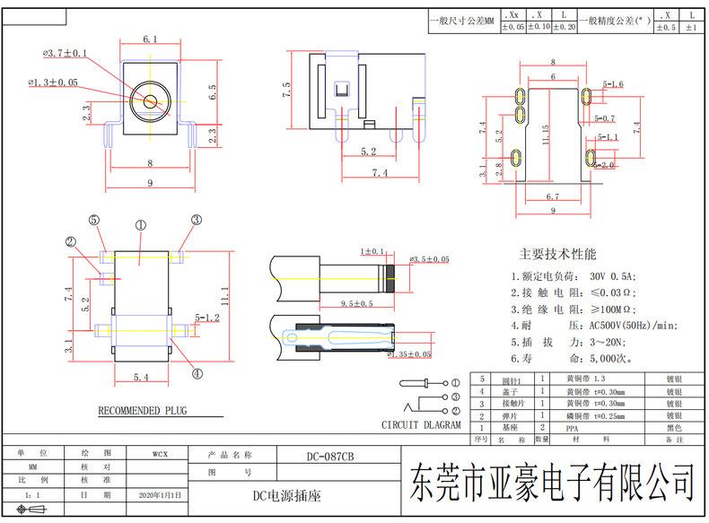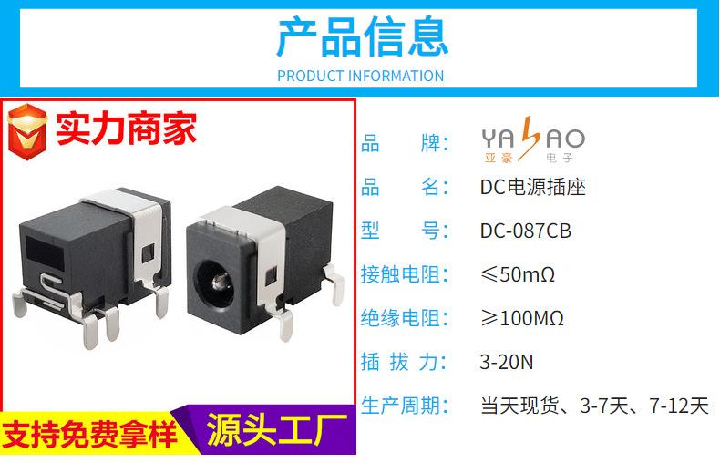 Conector hembra de CC 35135 para carga de electrodomésticos digitales de Shenzhen, conector de alimentación DC-087.