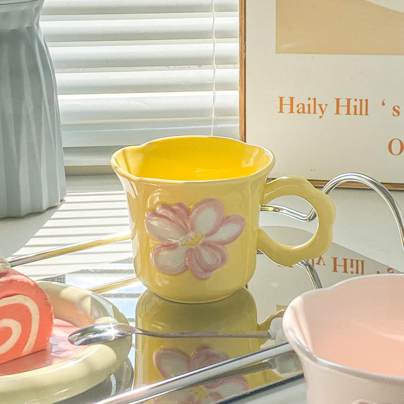 Taza de flores de estilo ins de aspecto alto taza de cerámica para beber de oficina para niñas taza de café coreana taza para leche