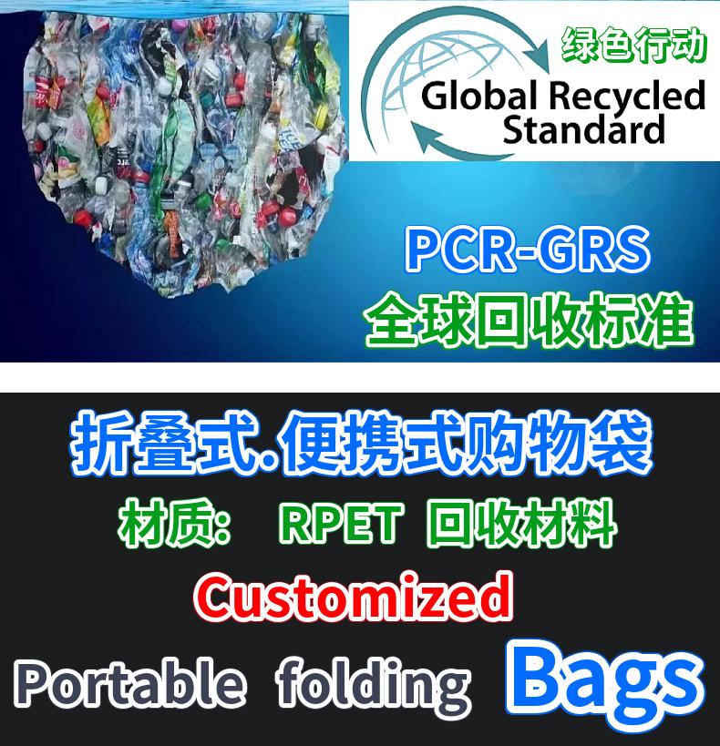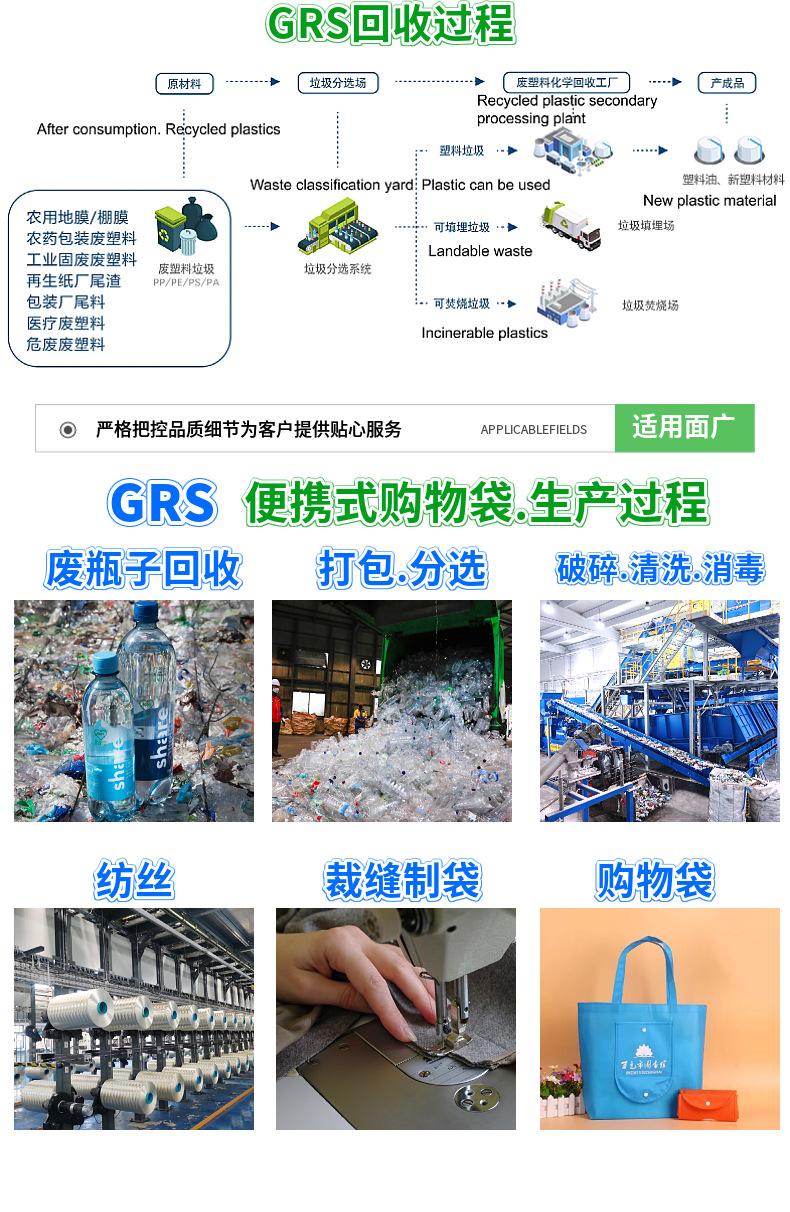 Fábrica de bolsas de compras de tela no tejida recubierta certificada GRS logo impreso publicidad de ropa bolso de mano de RPET no tejido