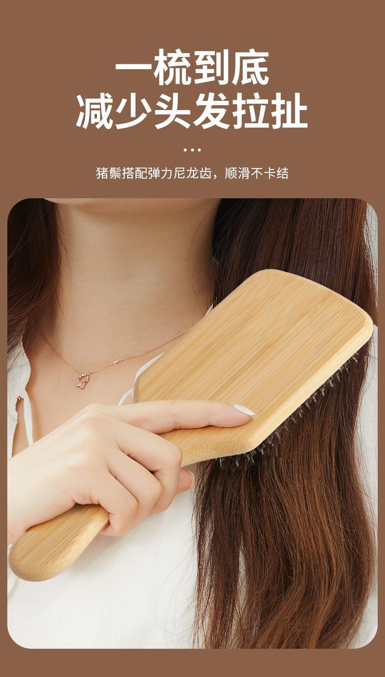 Cepillo de Cerdas de Jabalí Naturales con Cojín de Aire, Cepillo de Cerdas de Bambú, Cepillo de Madera con Bolsa de Aire, Popular en Temu, Exportación Transfronteriza, Cepillo de Masaje
