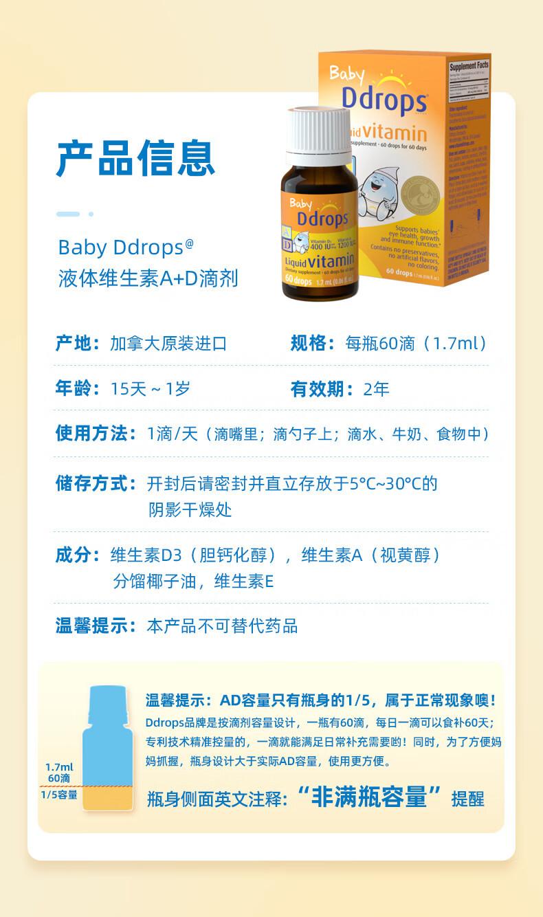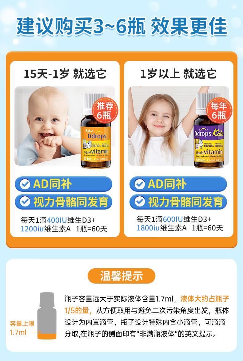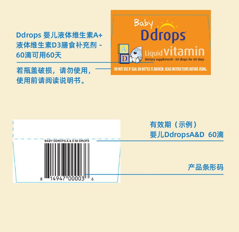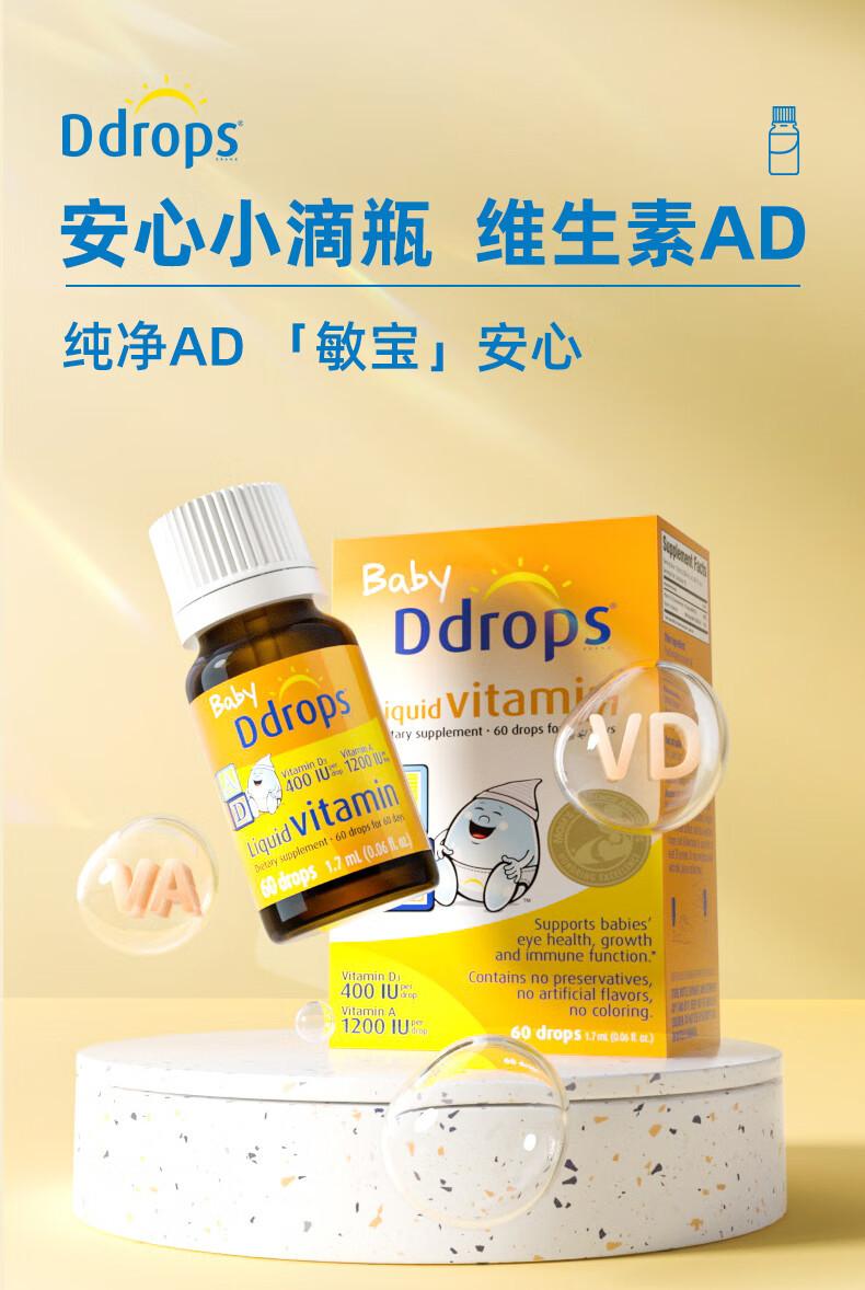 Ddrops Vitamina Naranja Ad1000Iu Gotas para Bebé Suplemento Ad Absorción de Calcio Gotas de 1.7ml Zhuosi
