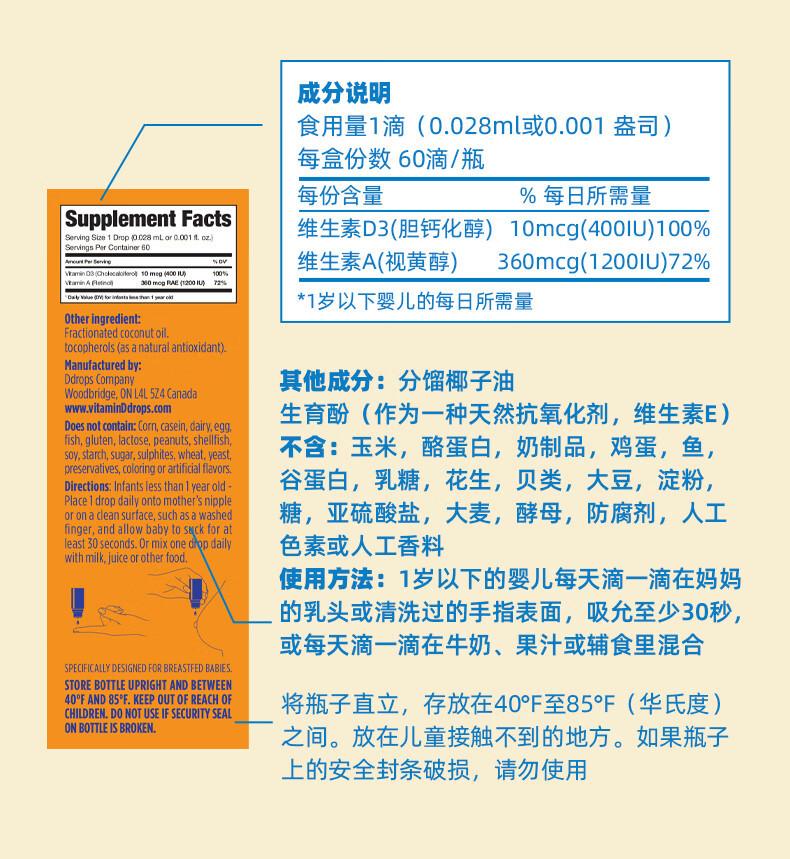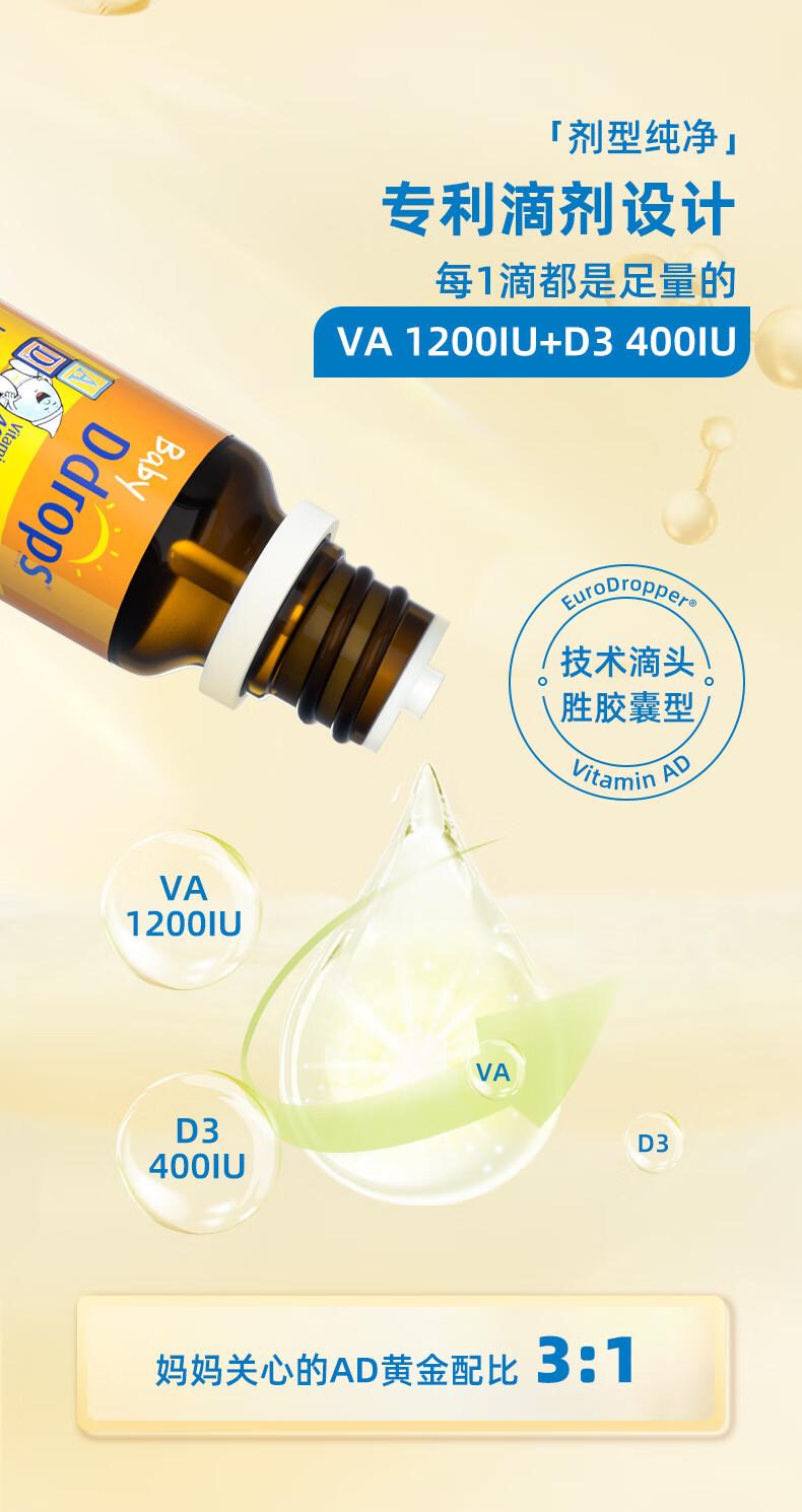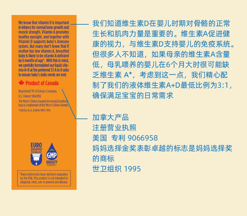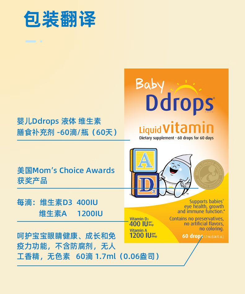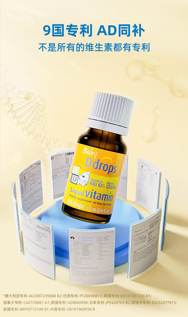 Ddrops Vitamina Naranja Ad1000Iu Gotas para Bebé Suplemento Ad Absorción de Calcio Gotas de 1.7ml Zhuosi