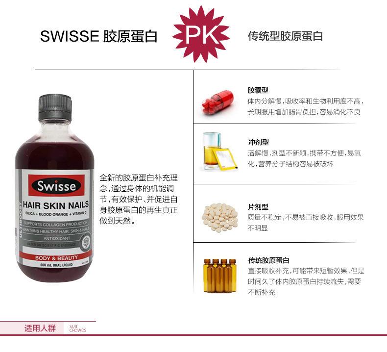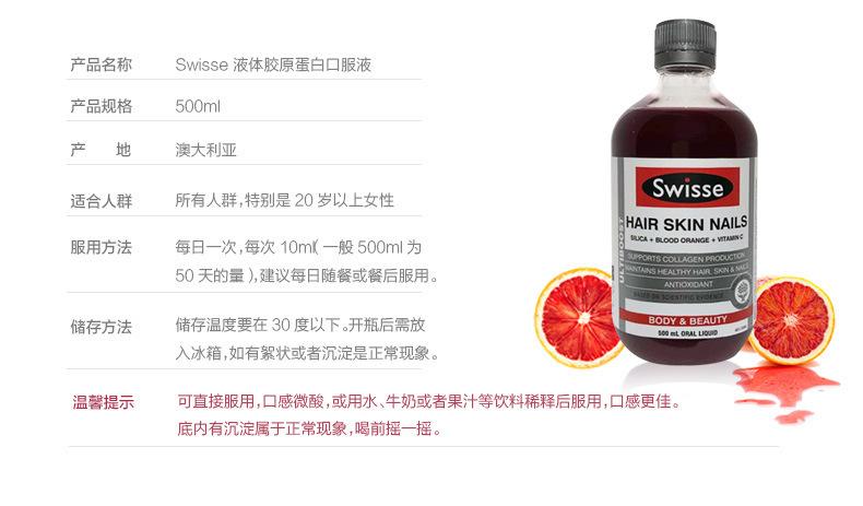 Líquido Oral de Colágeno Swisse Importado de Australia 500ml Antienvejecimiento Blanqueador Esencia de Naranja Sanguina para el Cuidado del Cabello y las Uñas
