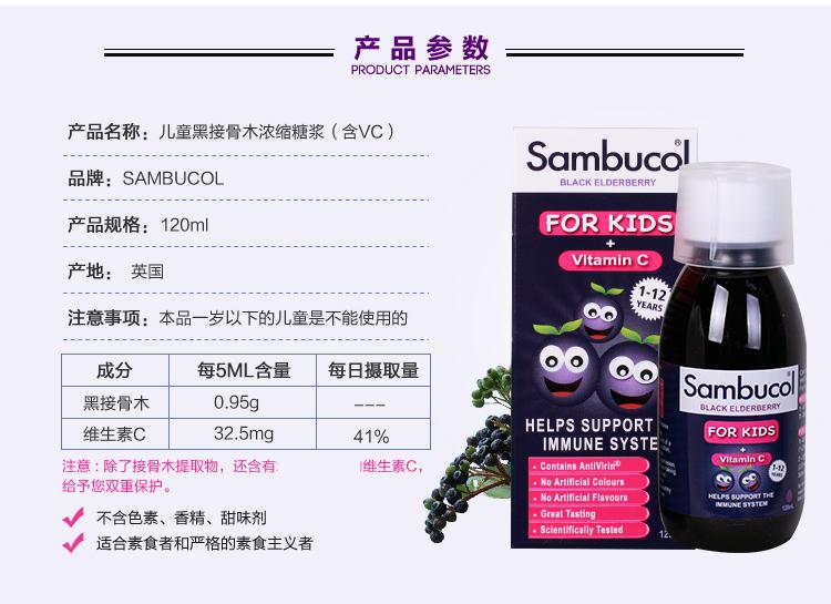 Jarabe de saúco negro Sambucol británico para bebés y niños, vitaminas para la prevención del frío, 120 ml