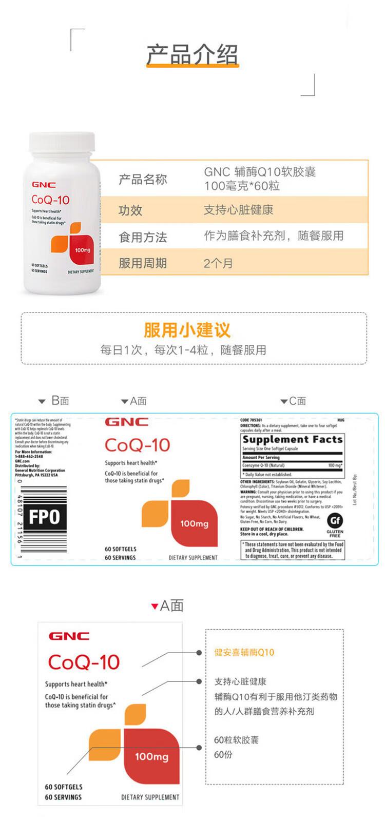 Gnc Importado del Extranjero Coenzima Q10 Miocárdica Cápsula Blanda Coenzima Ql0 Cuidado de la Salud del Corazón