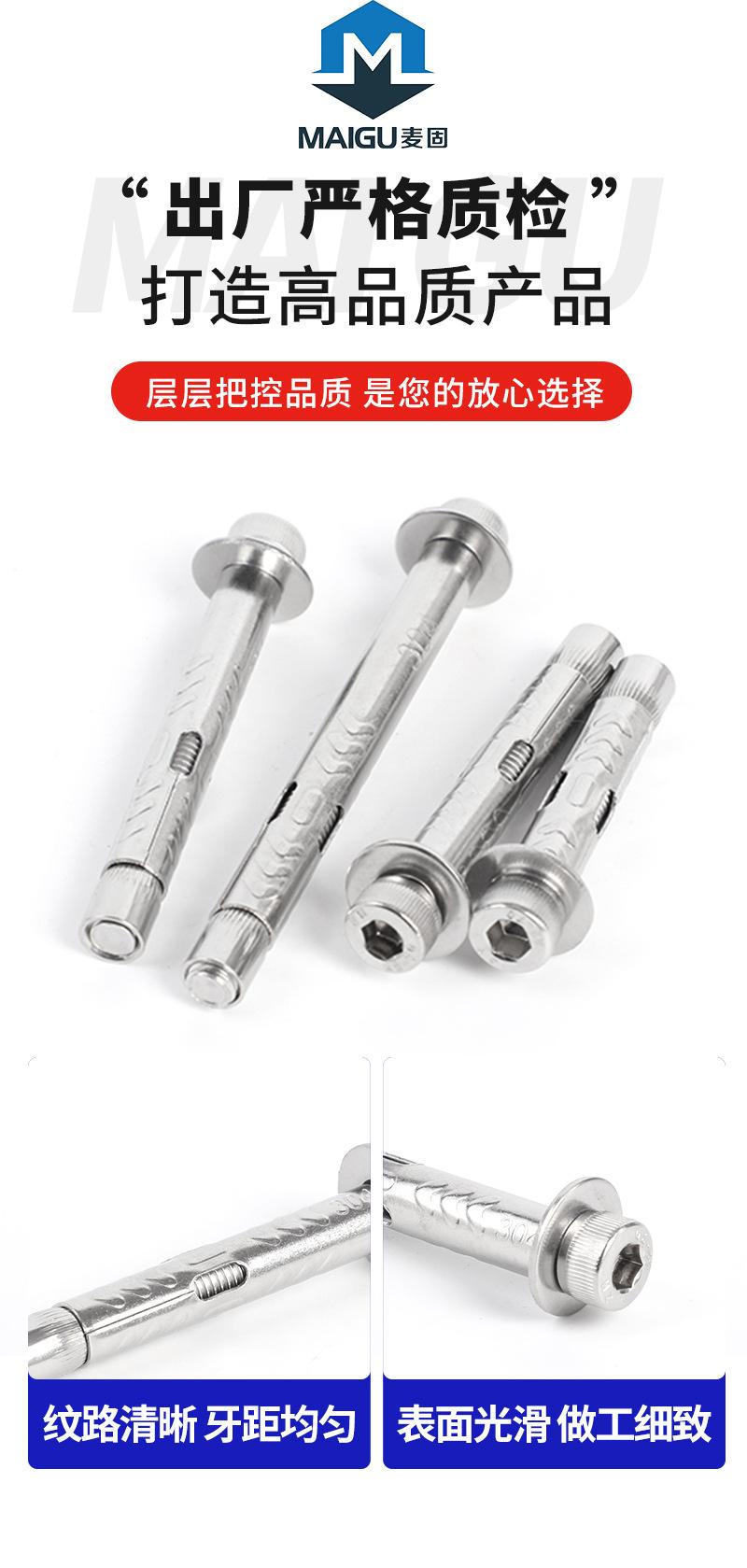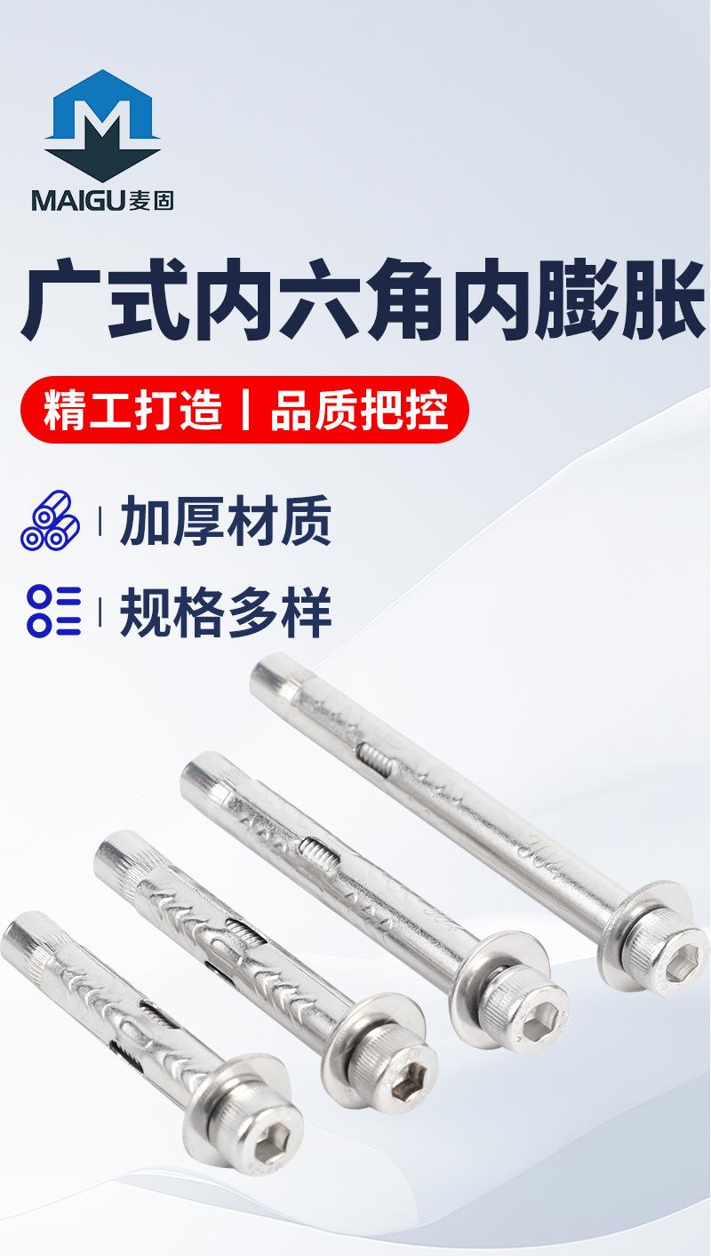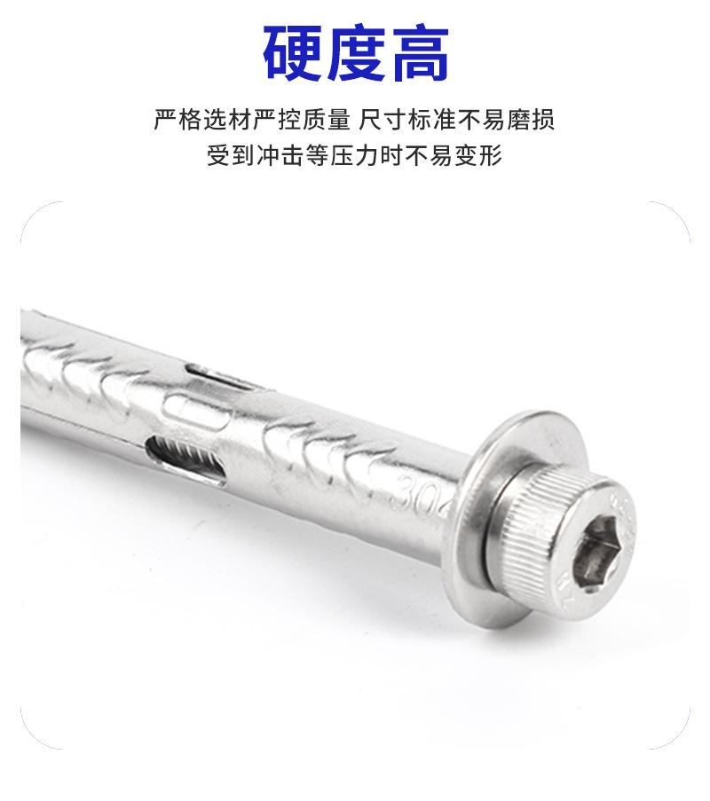 Tornillo de expansión hexagonal de acero inoxidable 304, tipo ancho, con cabeza cilíndrica integrada, para expansión interna.