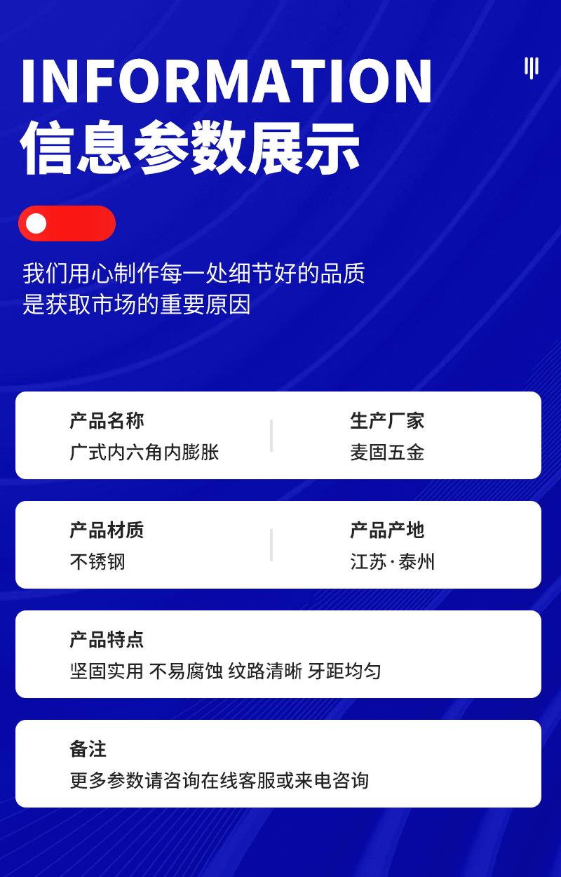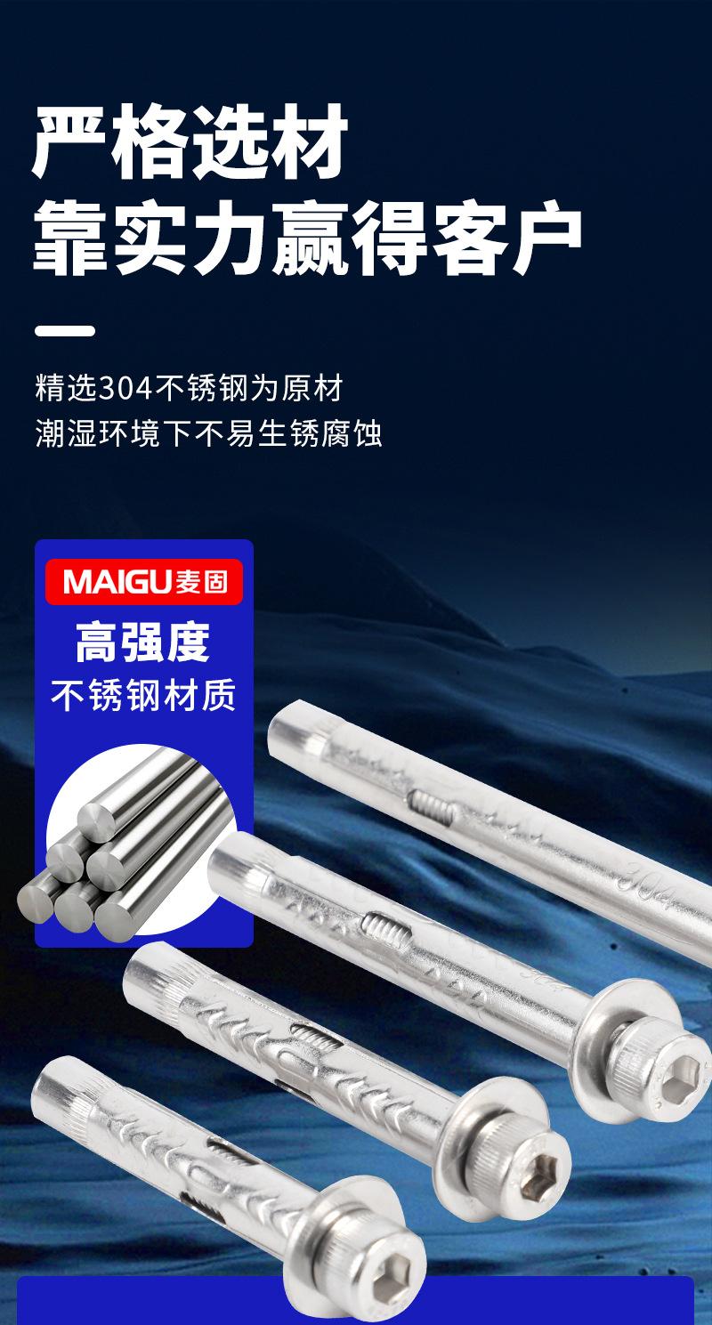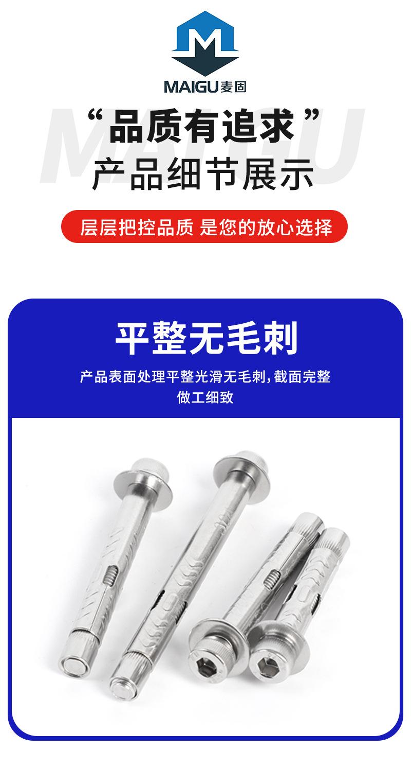 Tornillo de expansión hexagonal de acero inoxidable 304, tipo ancho, con cabeza cilíndrica integrada, para expansión interna.