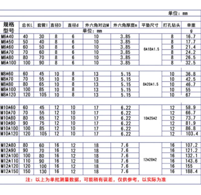M6*60, M6*70, M6*80, M6*90, M6*100, M8*60, M8*70, M8*80, M8*100